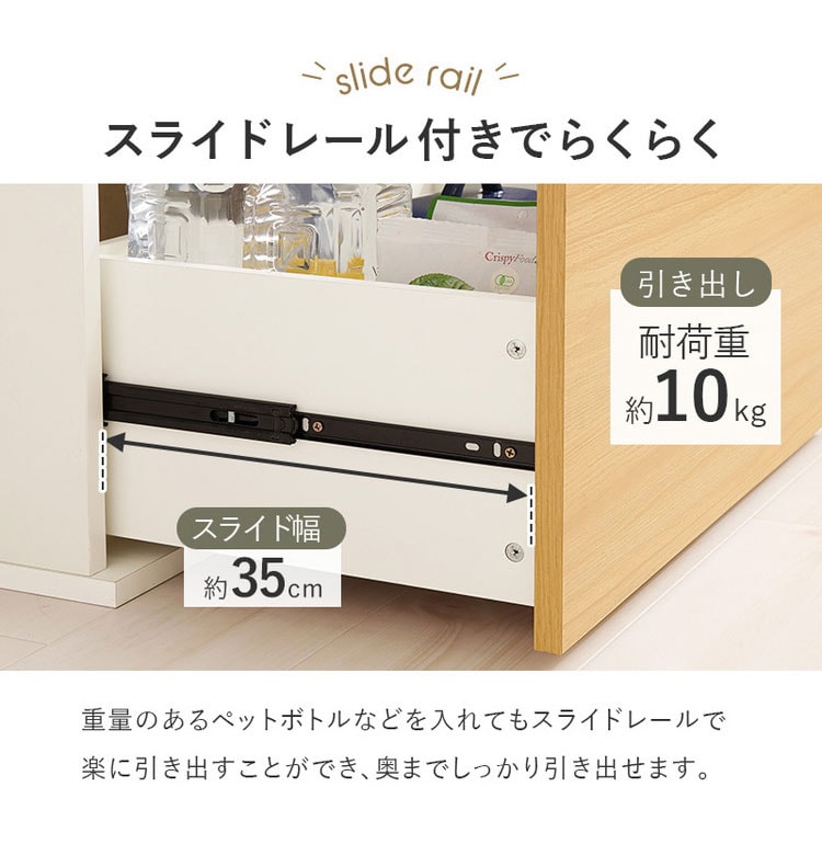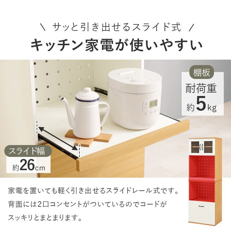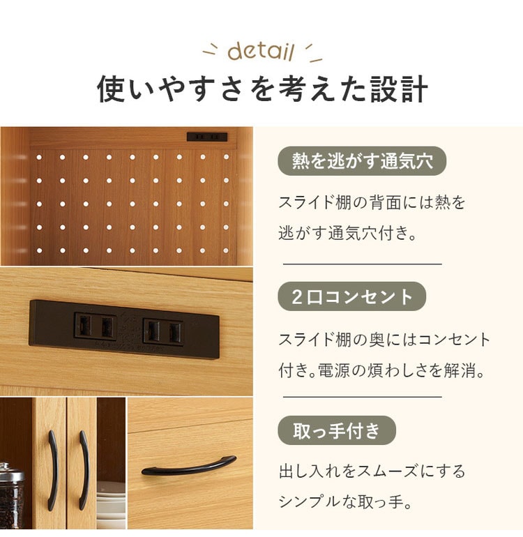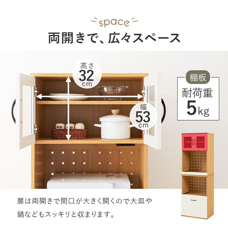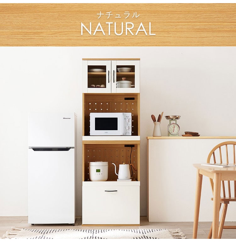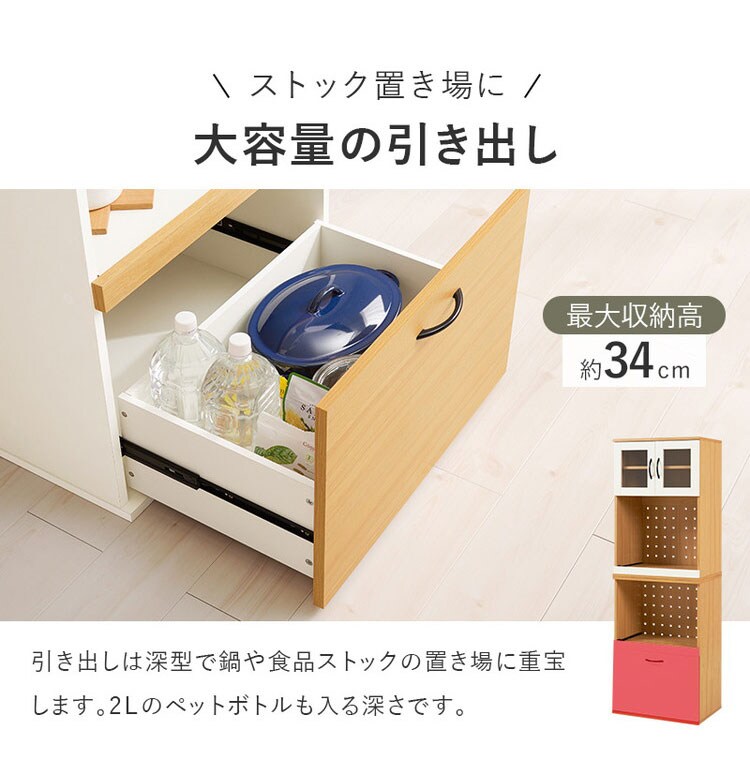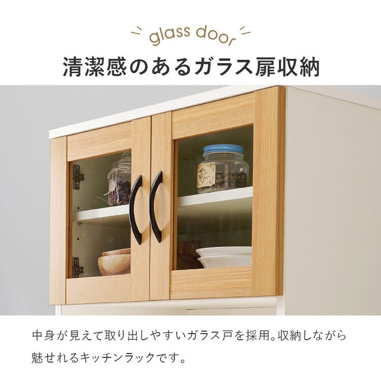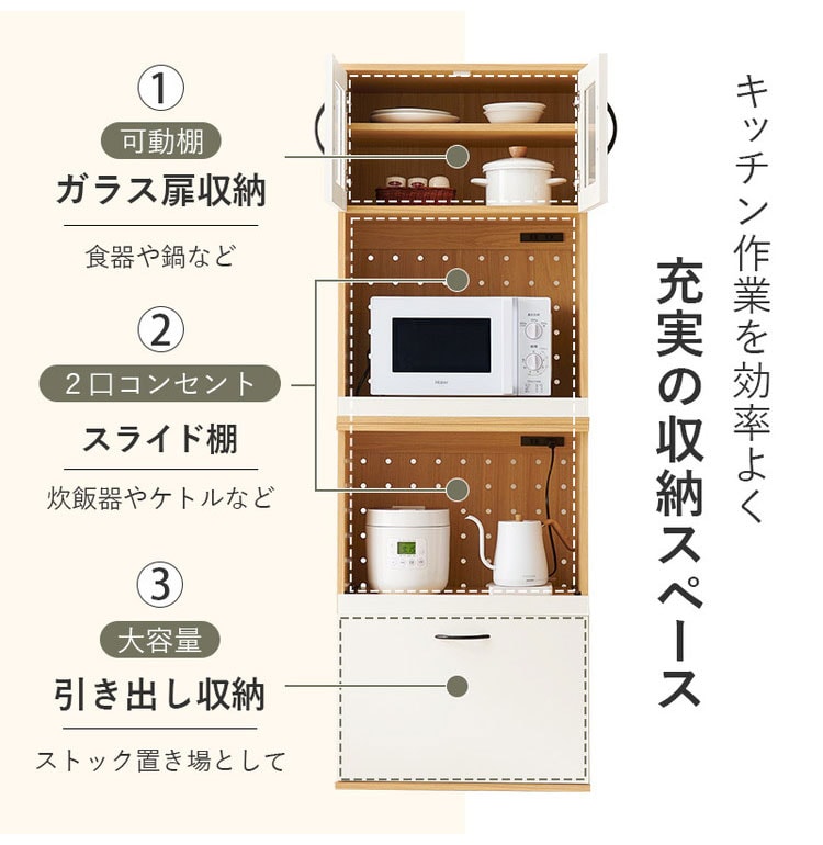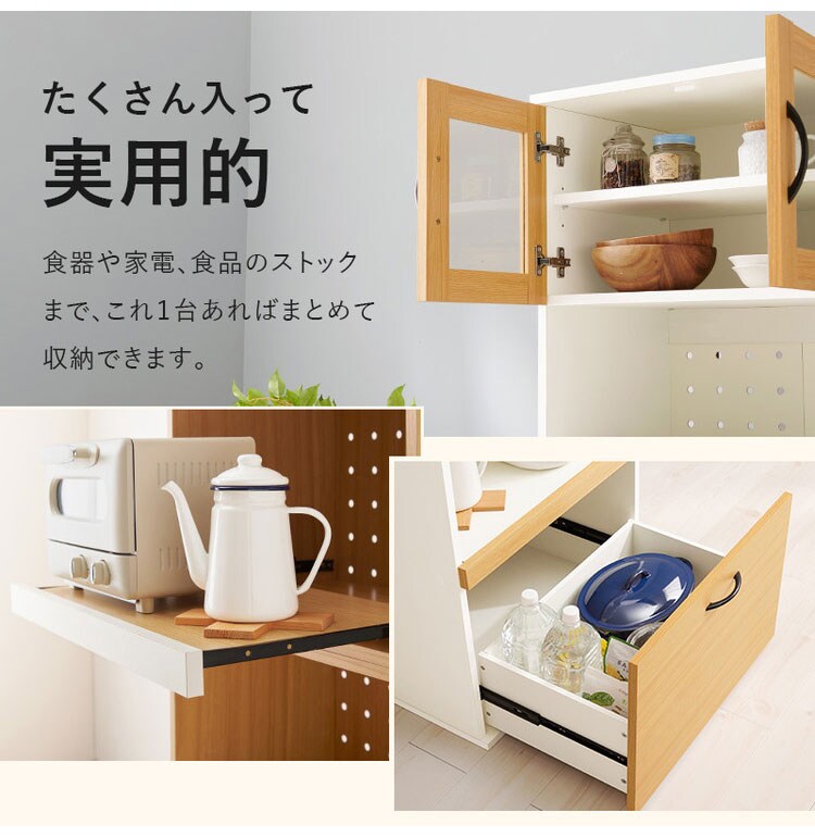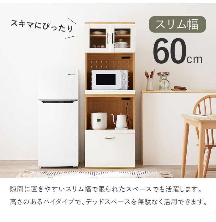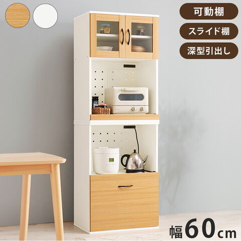食器や調理家電、食品ストックまでまとめて収納でき、キッチン作業を効率化。隙間に置きやすい幅60cm