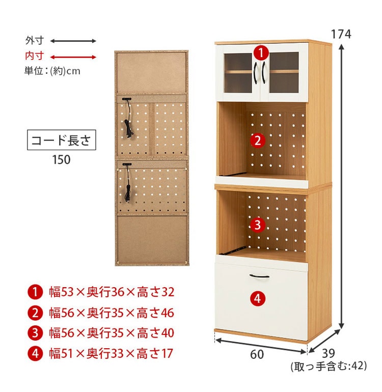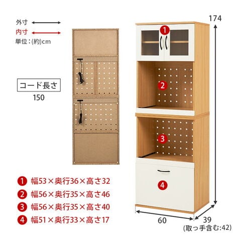 (約)幅60×奥行42(取手含む)×高さ174cm