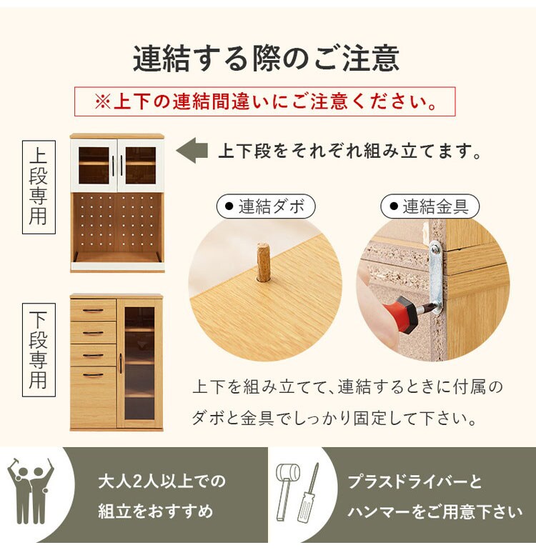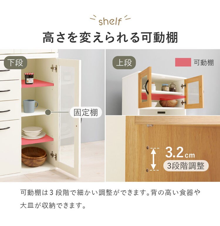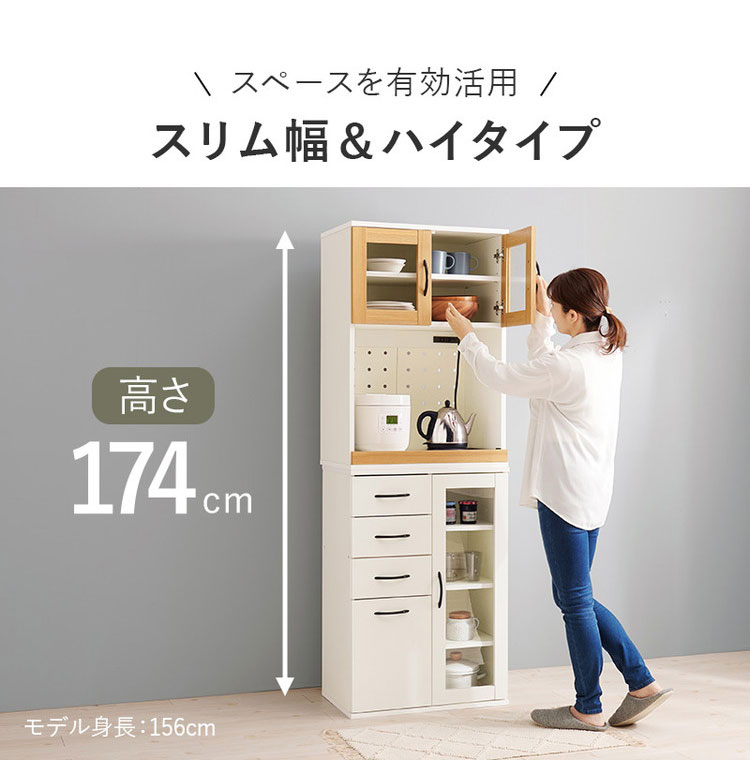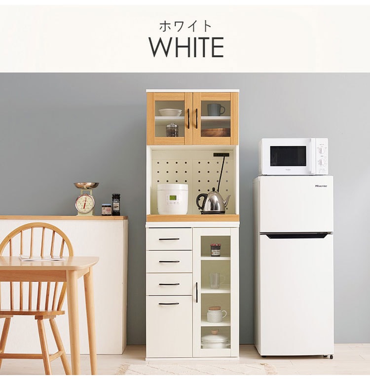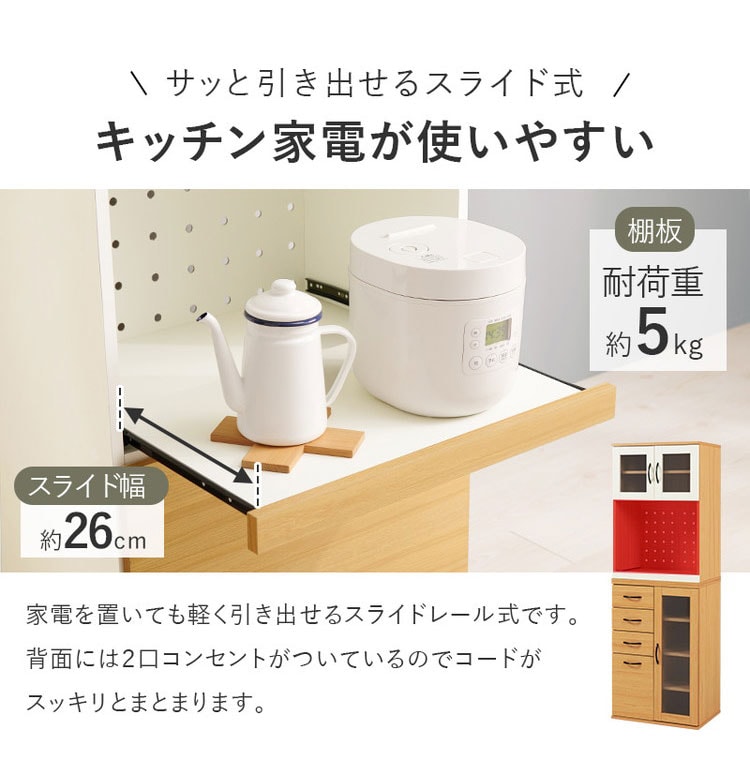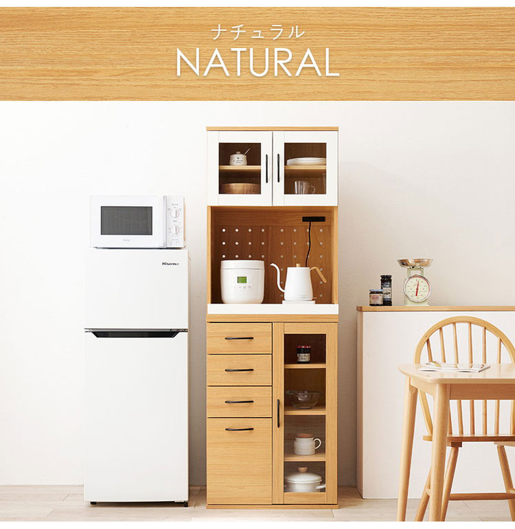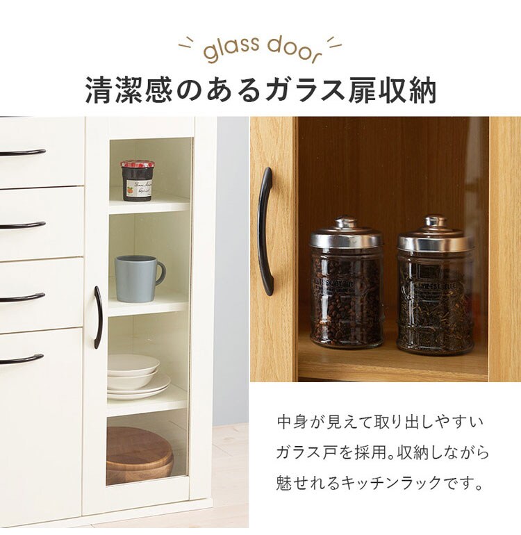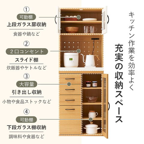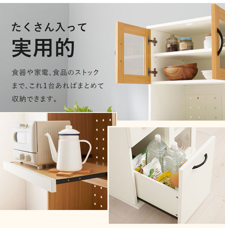 食器や調理家電、食品ストックまでまとめて収納でき、キッチン作業を効率化。隙間に置きやすい幅60cm