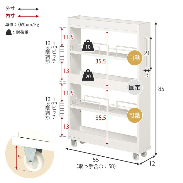 (約)幅12×奥行55(取手含む:58)×高さ85cm