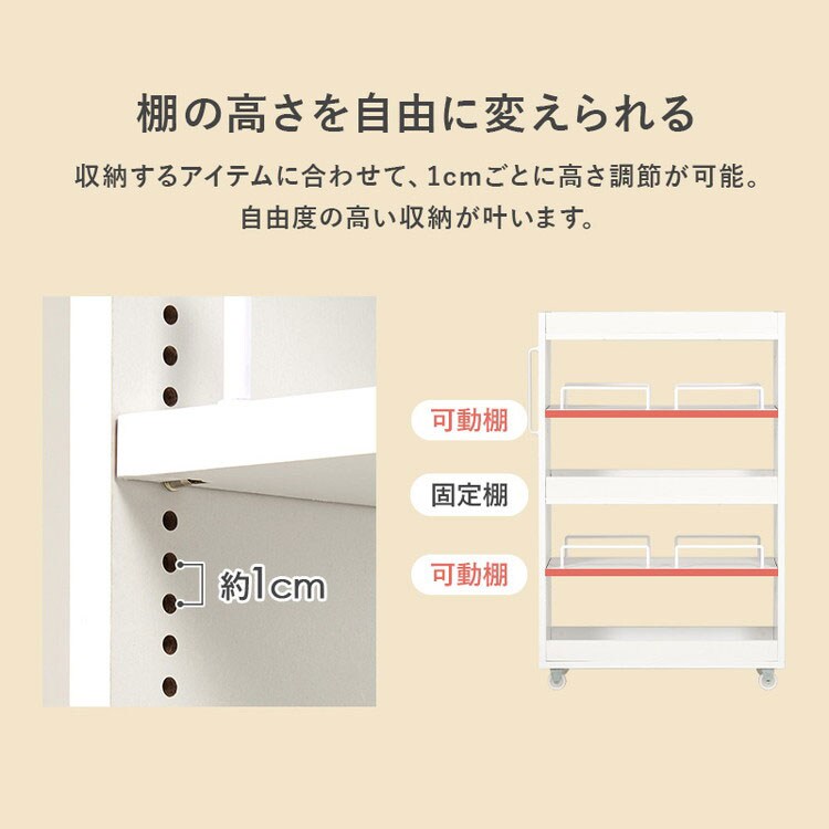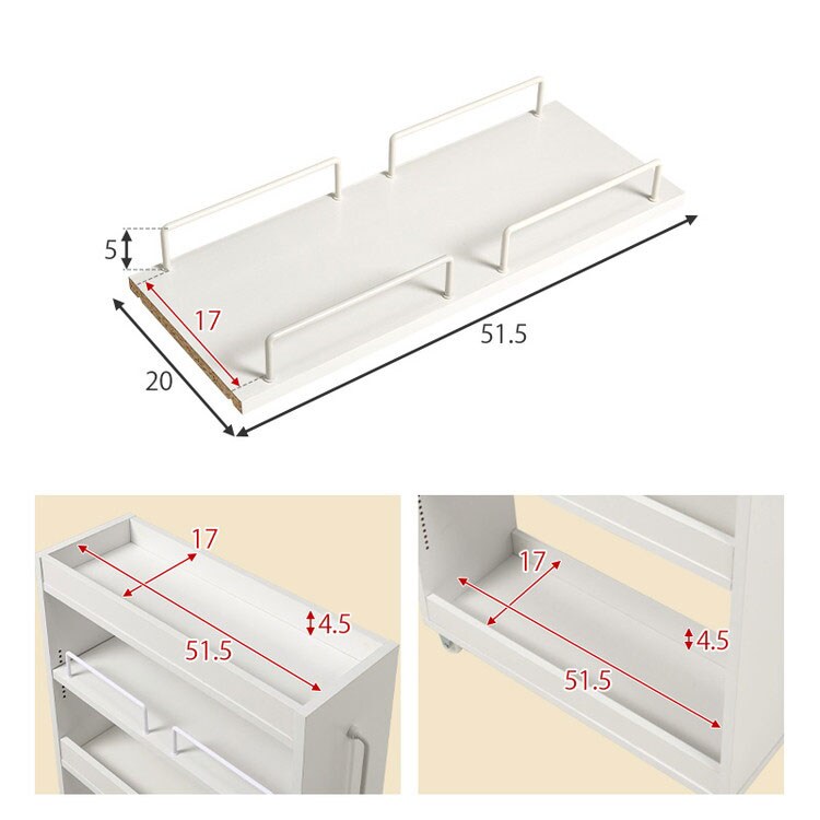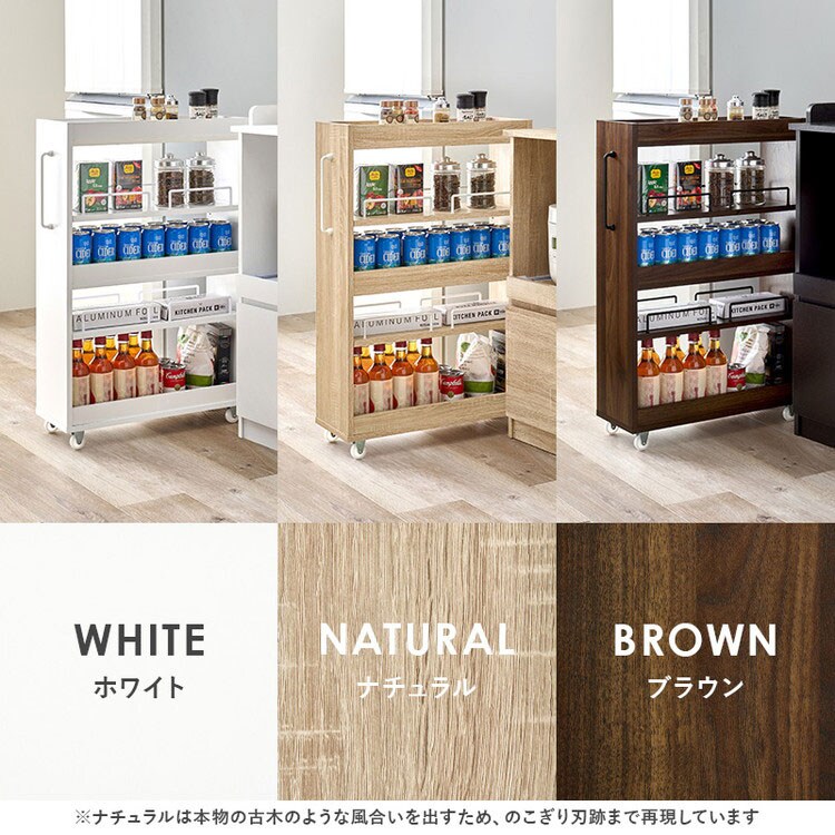 わずかな隙間に収まるスリムなワゴンラック。オープンタイプなので必要な時に取り出しやすく、キッチンやランドリースペースで活躍します。