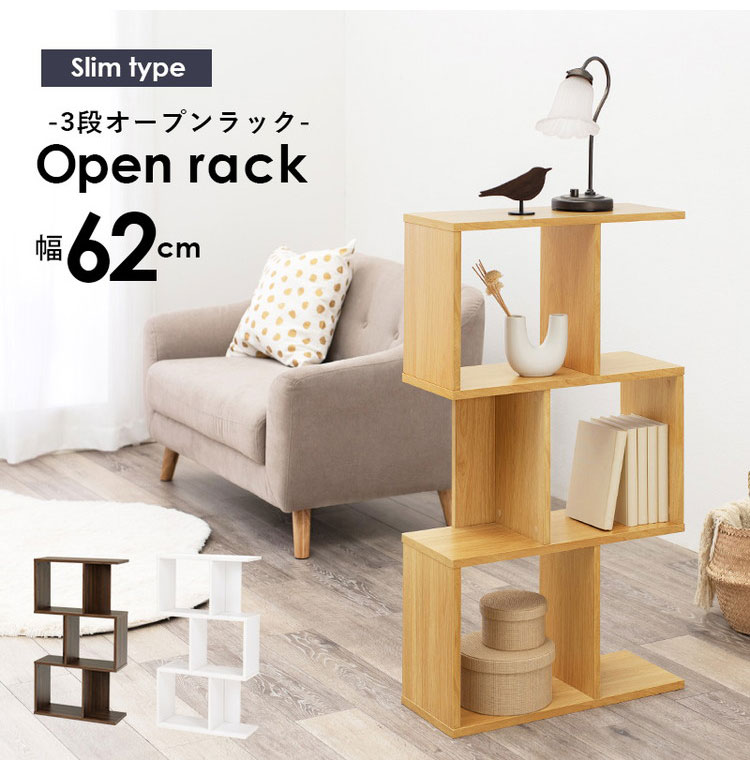 S字 ディスプレイラック 3段 幅62cm オープンラック S字ラック 本棚 シェルフ 収納 棚 間仕切り A4対応 ディスプレイ 推し活 ラック【送料無料】