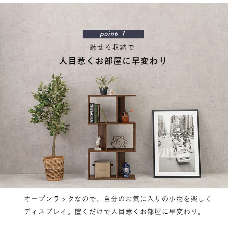 オープンラックなのでお気に入りの小物をディスプレイ可能。間仕切りとしても使えます。