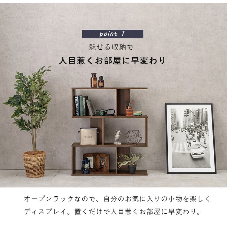 オープンラックなのでお気に入りの小物をディスプレイ可能。間仕切りとしても使えます。