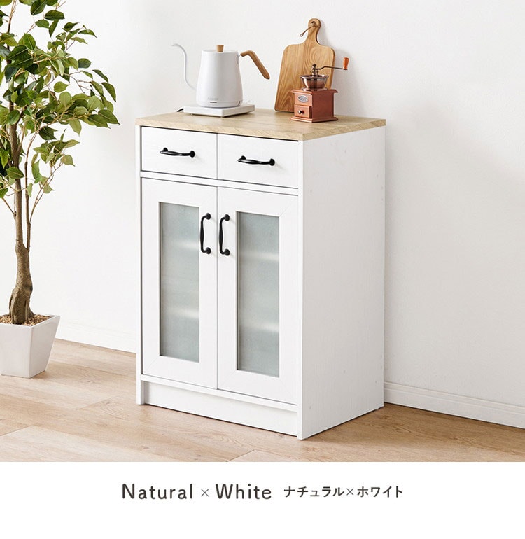 カントリー調 キッチンラック 幅58 扉収納 キャビネット 食器棚 可愛い かわいい 北欧 おしゃれ アンティーク調 キッチン収納 棚 ラック レンジ台 レンジボード キッチンボード【送料無料】