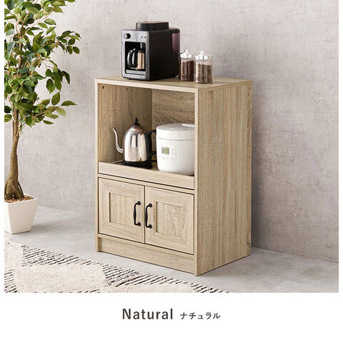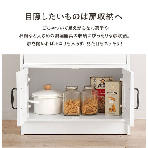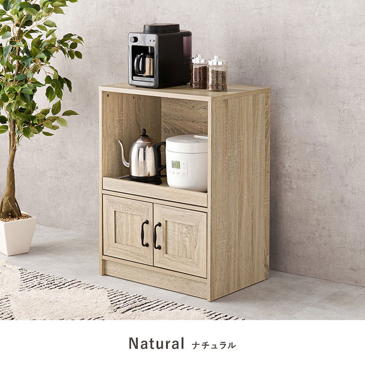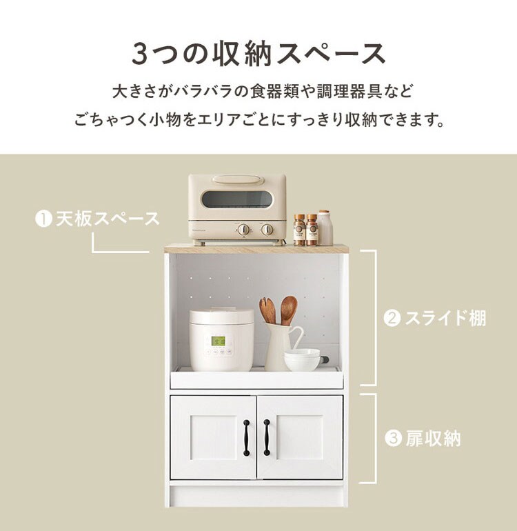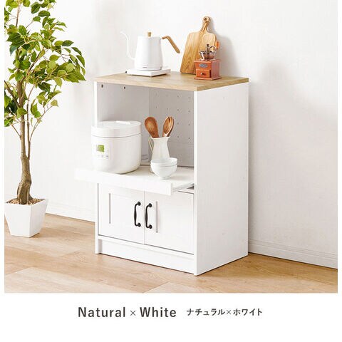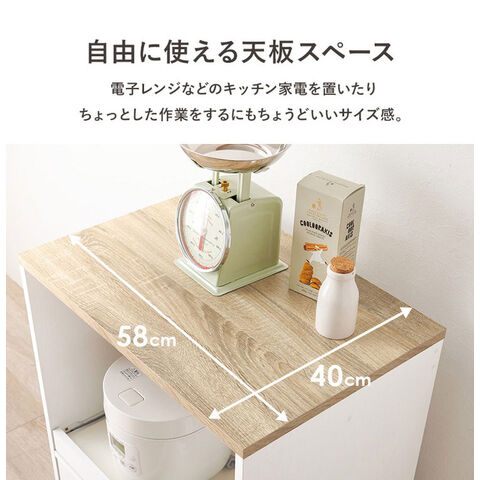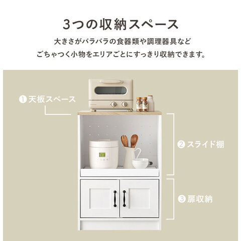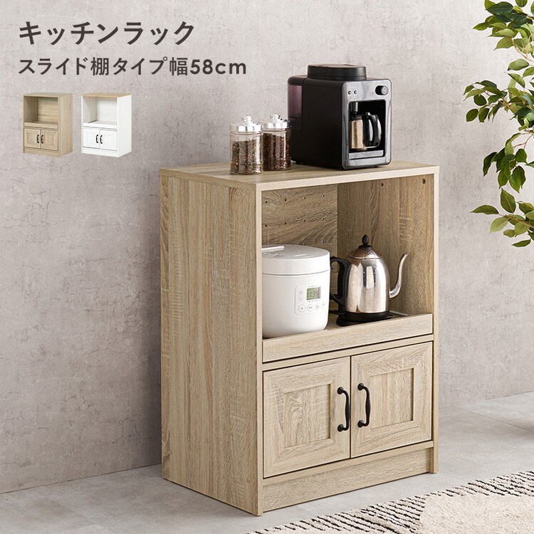 カントリー調 キッチンラック 幅58 スライド棚 2口コンセント 扉収納 食器棚 可愛い かわいい 北欧 おしゃれ アンティーク調 キッチン収納 棚 ラック レンジ台 レンジボード キッチンボード【送料無料】
