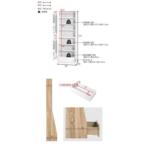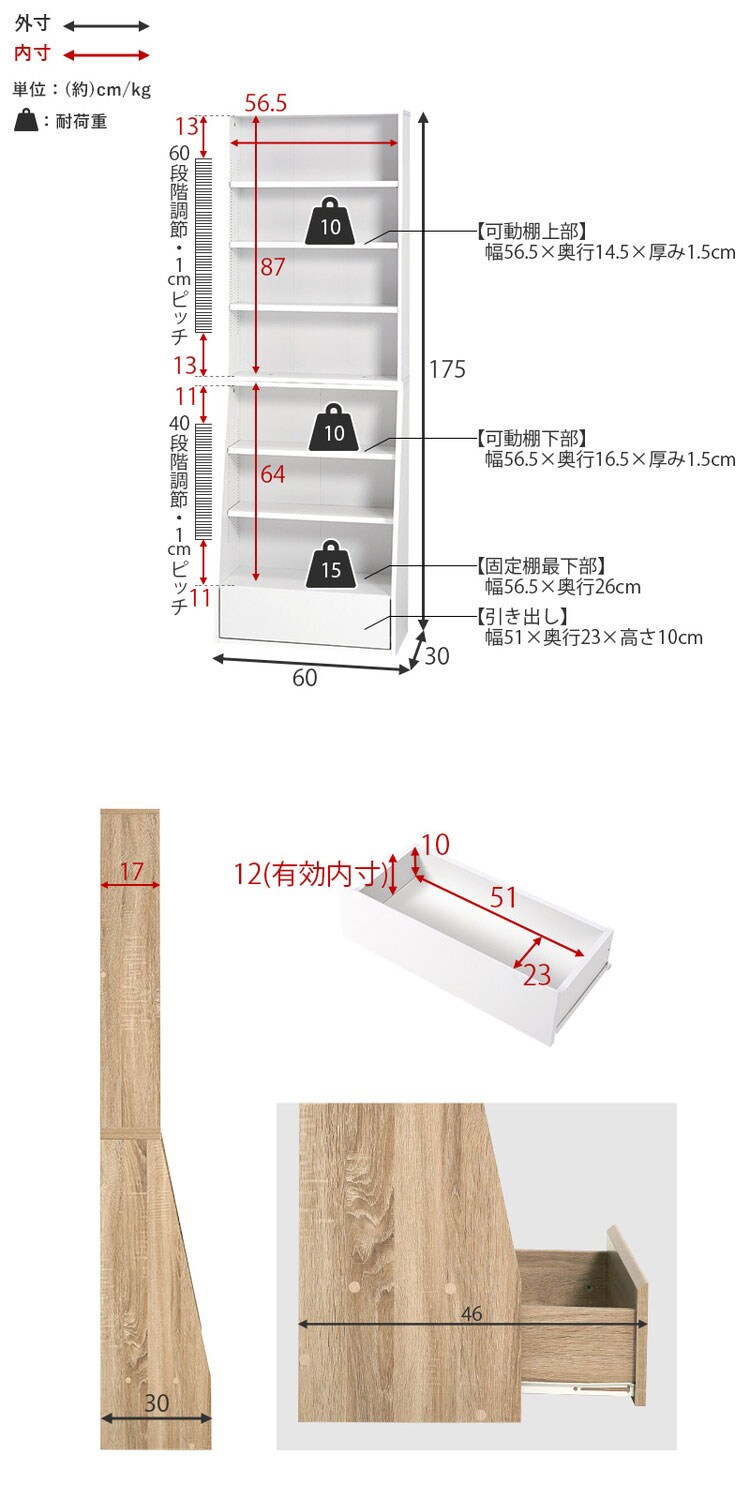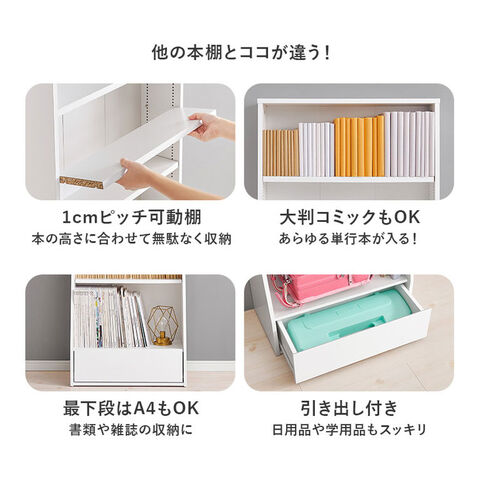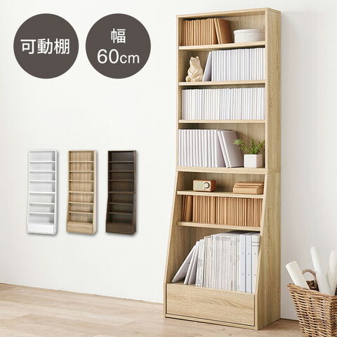 本棚 幅60cm ハイタイプ 棚板 1cmピッチ調節 引き出し付き A4 A5 文庫本 漫画 コミック 雑誌 マガジン 絵本 教科書 ランドセル ラック シェルフ 大容量 おしゃれ【送料無料】