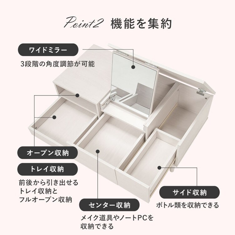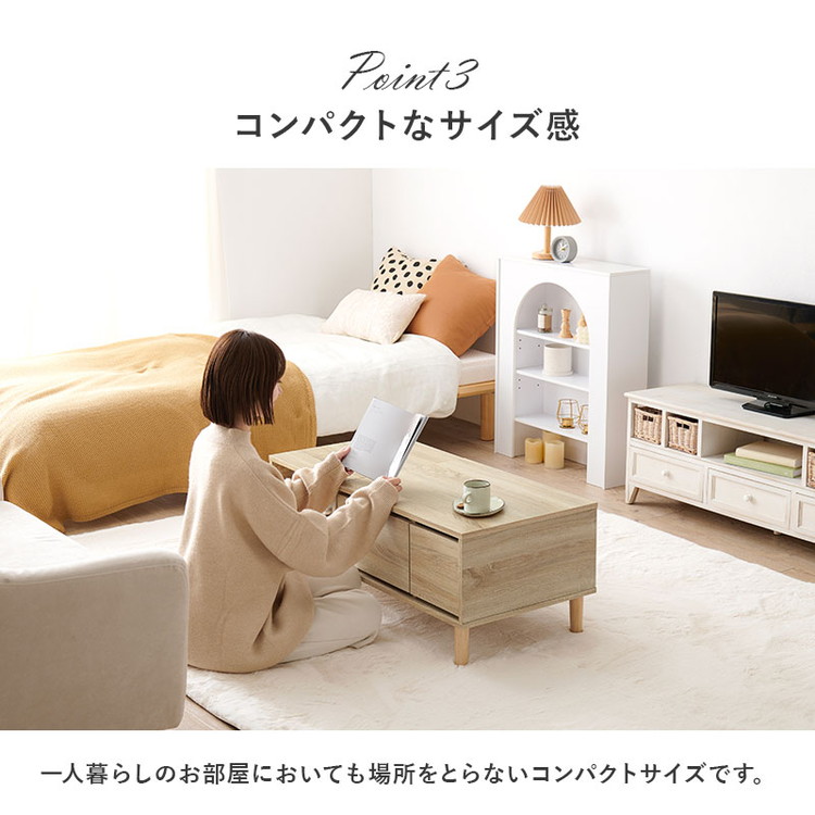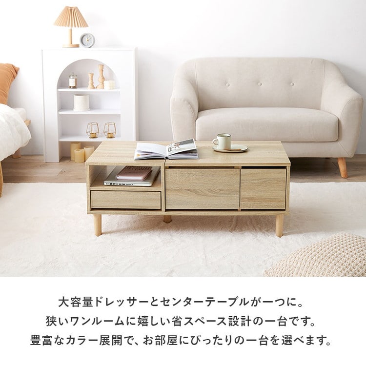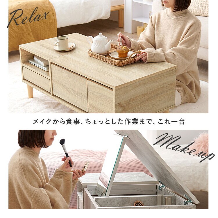 天板を開ければドレッサーとして使えるセンターテーブル。幅95cm