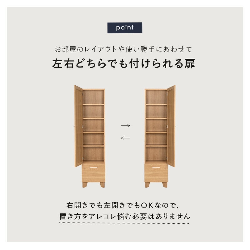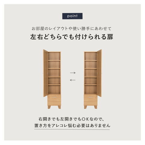 扉は左右どちらでも付けられるので、レイアウトに悩みません。