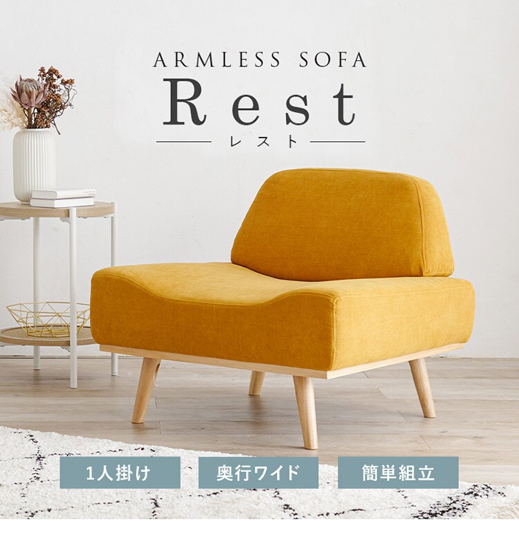 アームレスソファ ゆったり座面 幅75 奥行ワイド 脚付き 1人掛け 肘無し 1P 北欧 おしゃれ 天然木脚 ローソファー ファブリック 1Pソファ【送料無料】