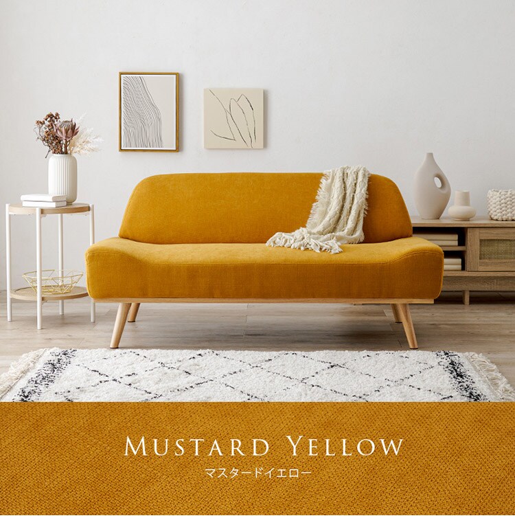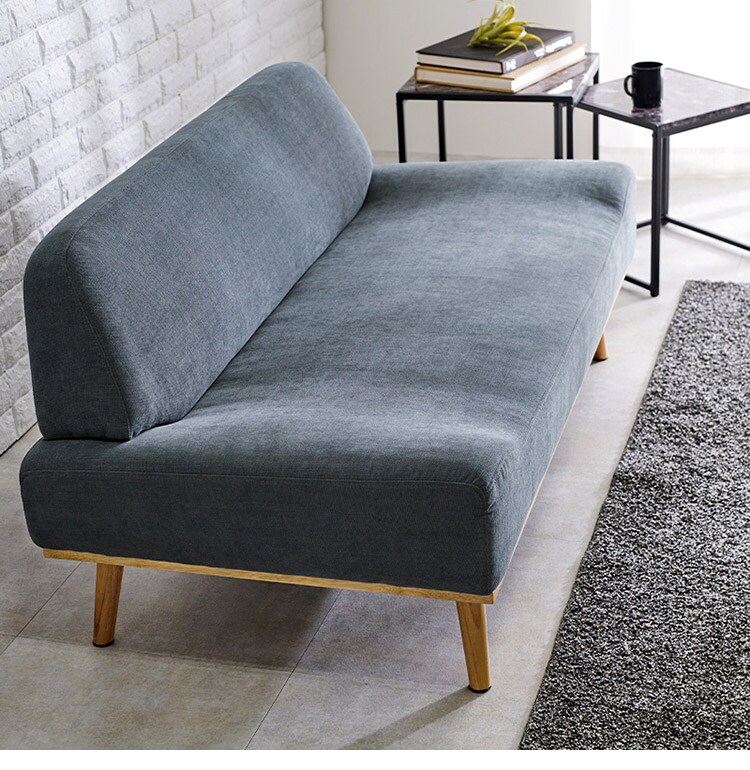 空間に圧迫感を与えないローデザインの二人掛けソファ。肘掛けを無くしたすっきりとした印象で、ゆったり広々座れます。