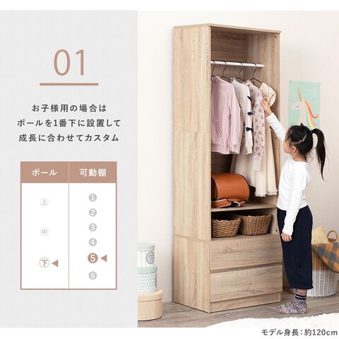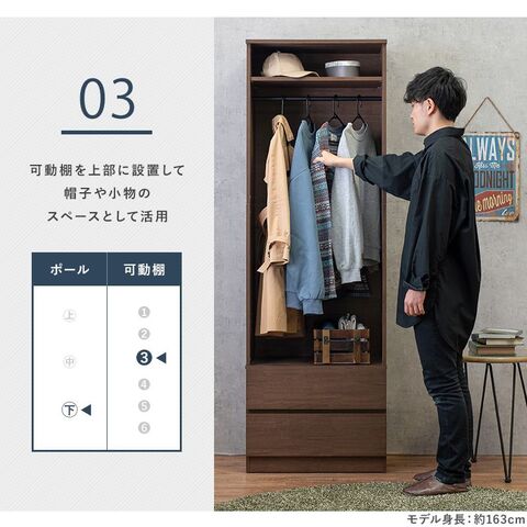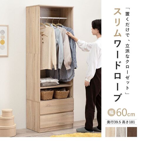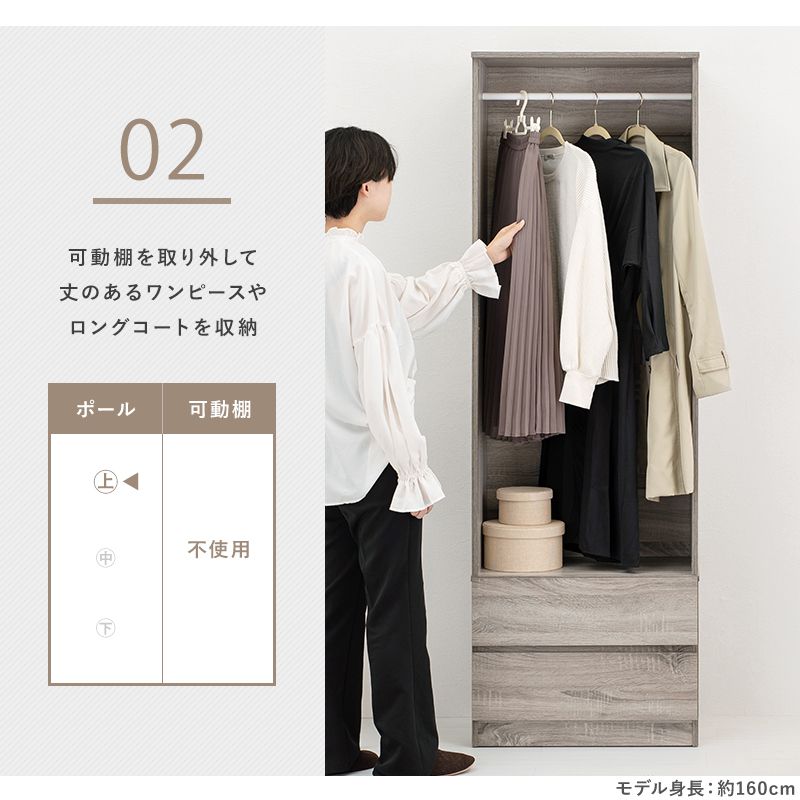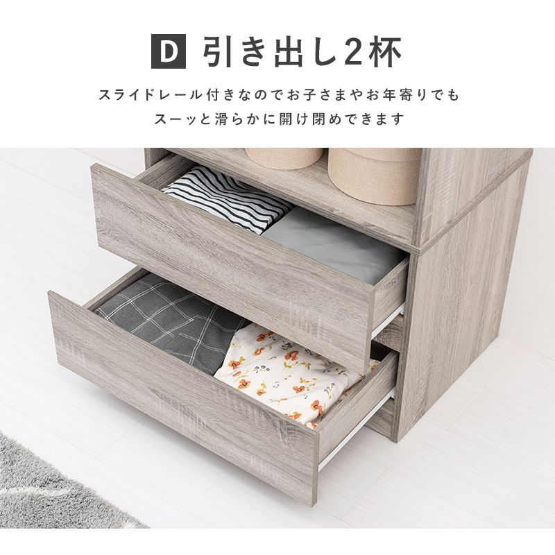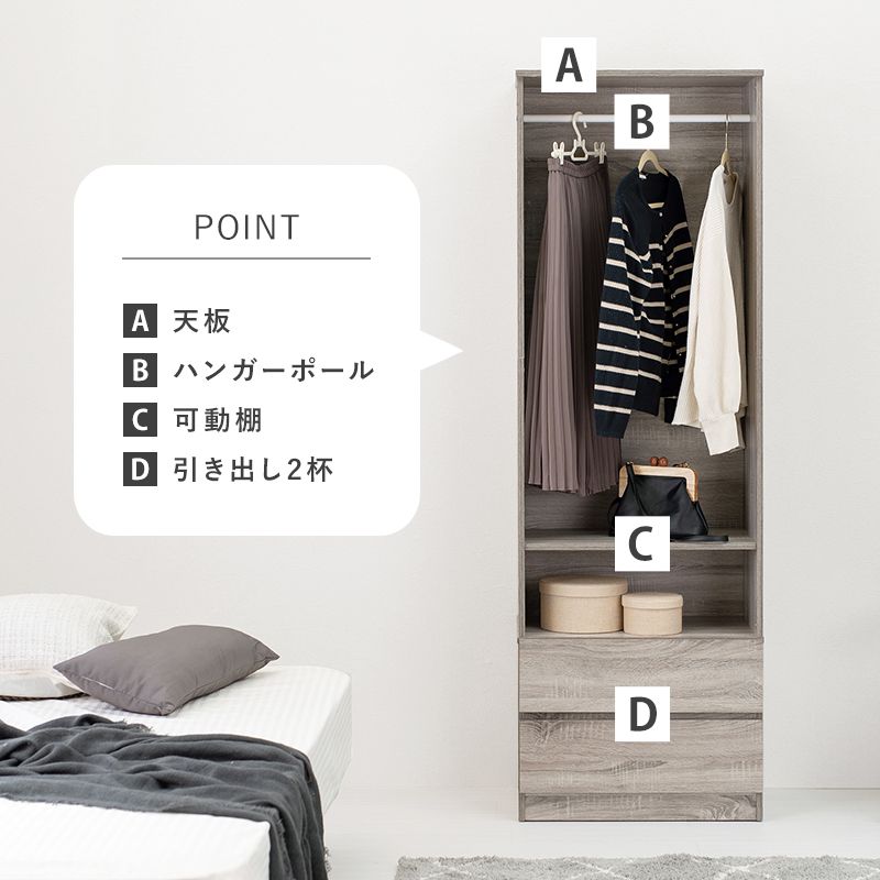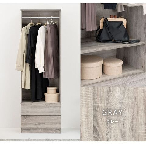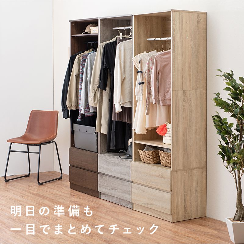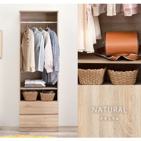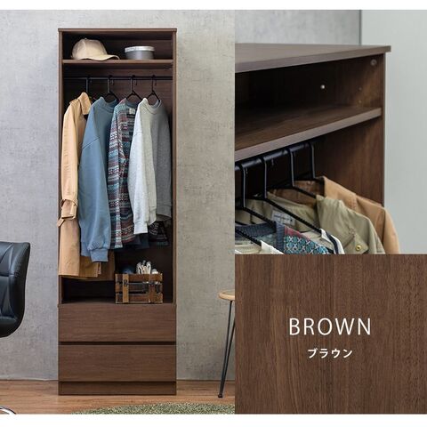 シンプルに収納出来る引き出し収納付きワードローブ。2サイズ展開。
