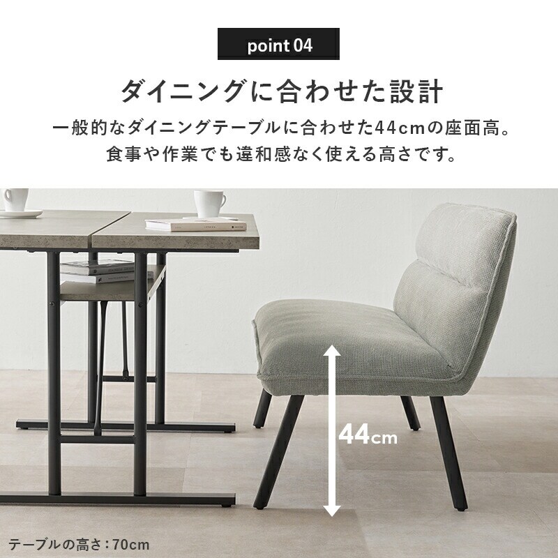 「くつろぐ」「食事する」を1台でかなえ、リビングダイニングをゆとりのある空間に。一般的なダイニングテーブルに合わせた高さです。