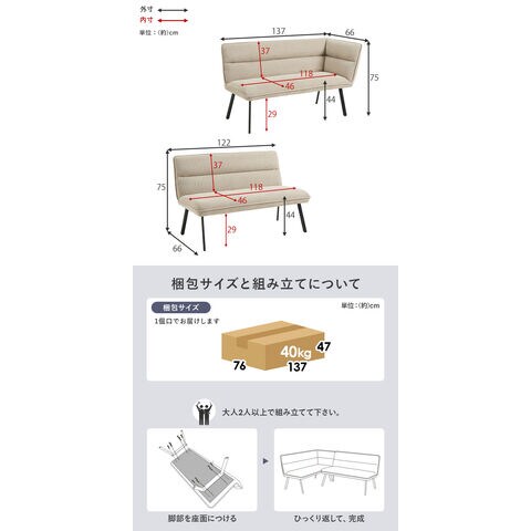 片肘:(約)幅137×奥行66×高さ75×座面高44cm