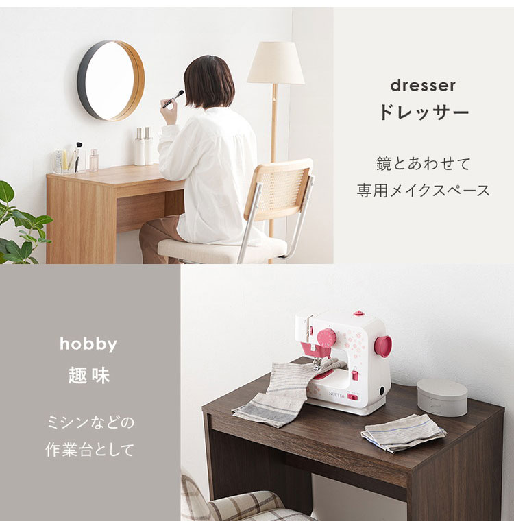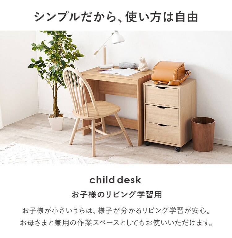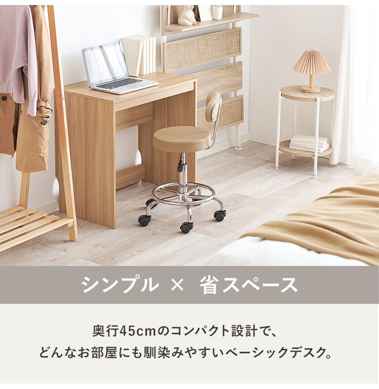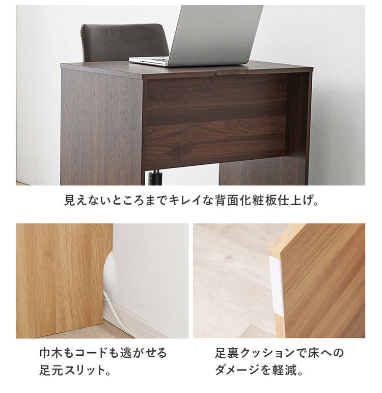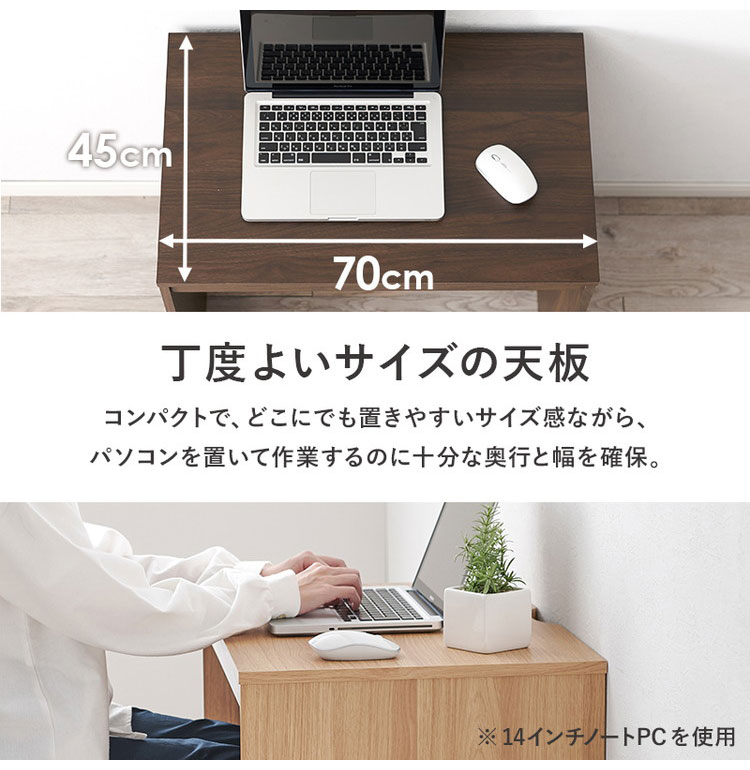 リビングのちょっとしたスペースにも置きやすい奥行スリムなシンプルデスク。コンパクトな幅70cmタイプ