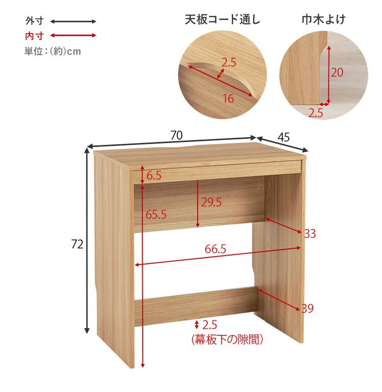 デスク 70×45cm スリムデスク 耐荷重80kg 頑丈 シンプル ナチュラル 机 コの字 ワークデスク 書斎 コンパクト 北欧 木目調 ナチュラル【送料無料】