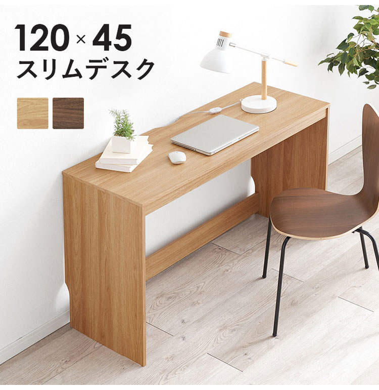 デスク 120×45cm スリムデスク 耐荷重80kg 頑丈 シンプル ナチュラル 机 コの字 ワークデスク 書斎 コンパクト 北欧 木目調 ナチュラル【送料無料】