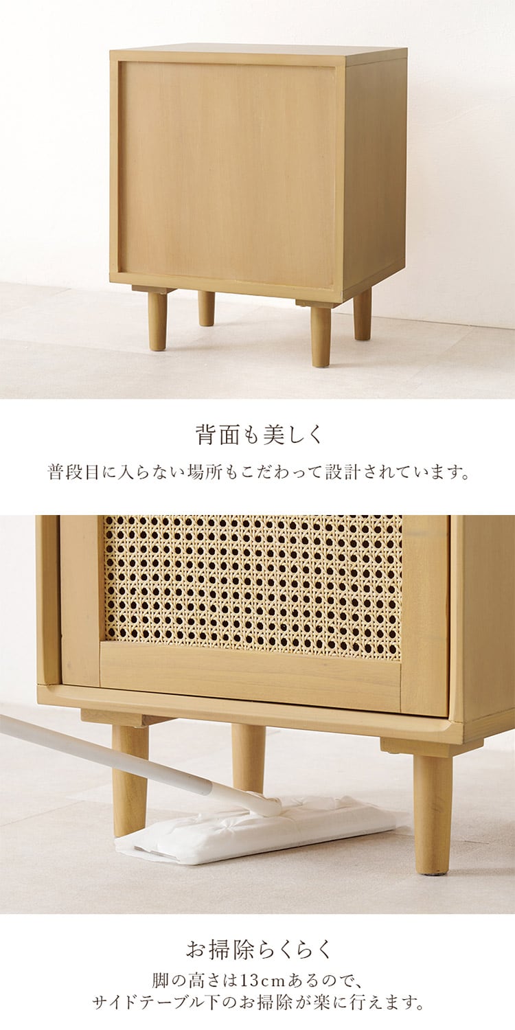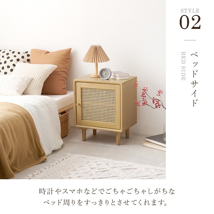 天然ラタン かごめ編み サイドテーブル 幅45 収納棚 ナイトテーブル ベッドテーブル 棚 収納 ナチュラル 木製 脚付き 籐 おしゃれ 韓国インテリア【送料無料】