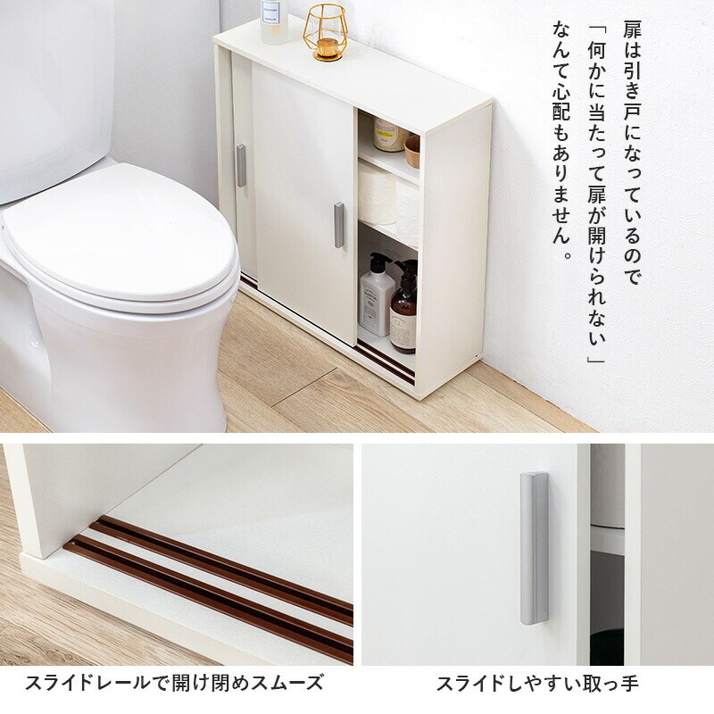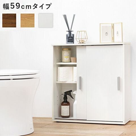スリム トイレラック トイレ収納 幅59 奥行19.5 サニタリー 引戸 大容量 すき間収納 隙間収納 玄関収納 キッチンカウンター 白 シンプル おしゃれ【送料無料】