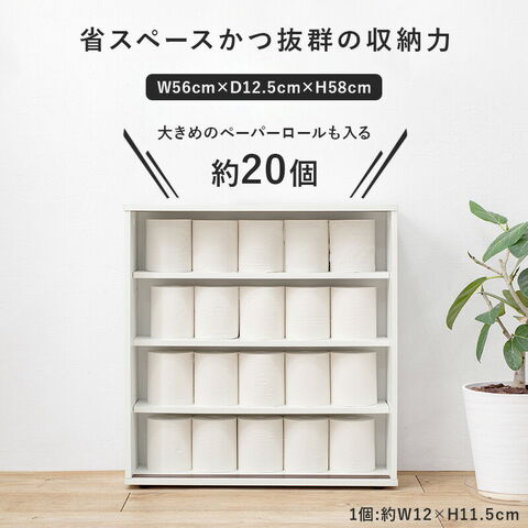 省スペースながら収納力を備えたトイレラック。大きめのペーパーロールも約20個入ります。