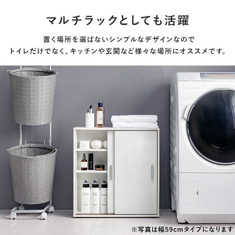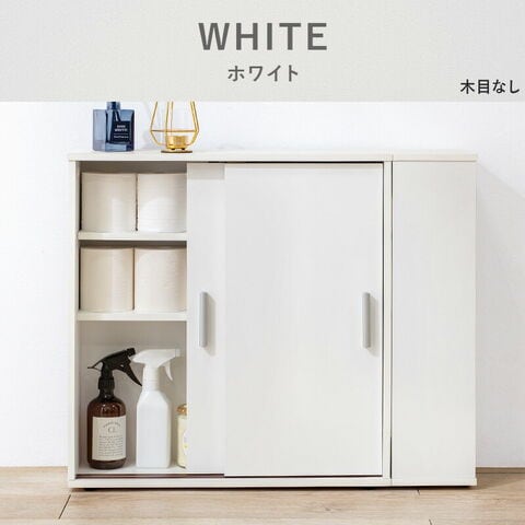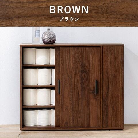 トイレットペーパーの収納はもちろん、掃除道具やサニタリー用品を隠して収納することも可能です。