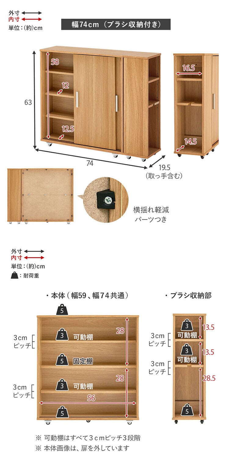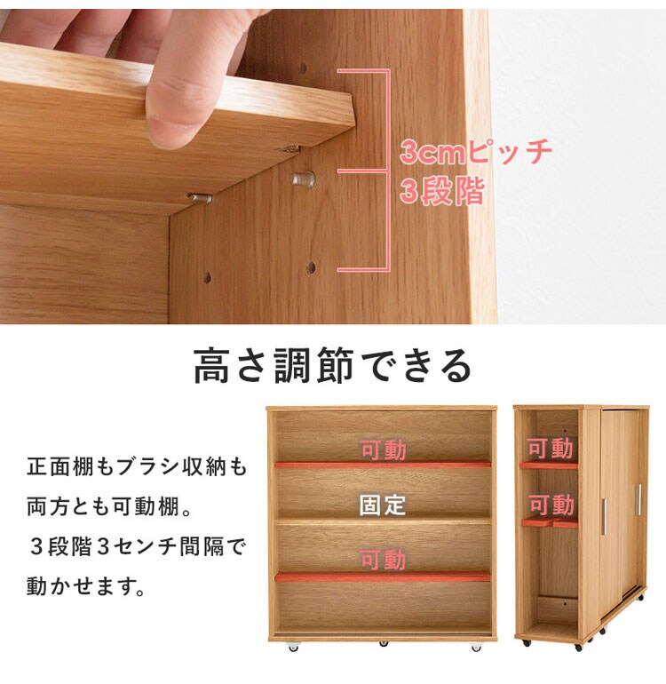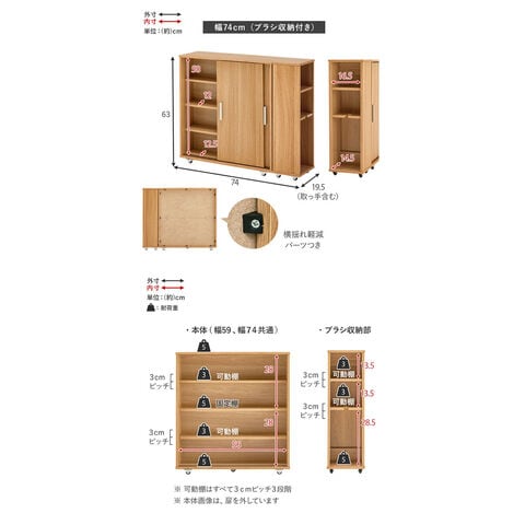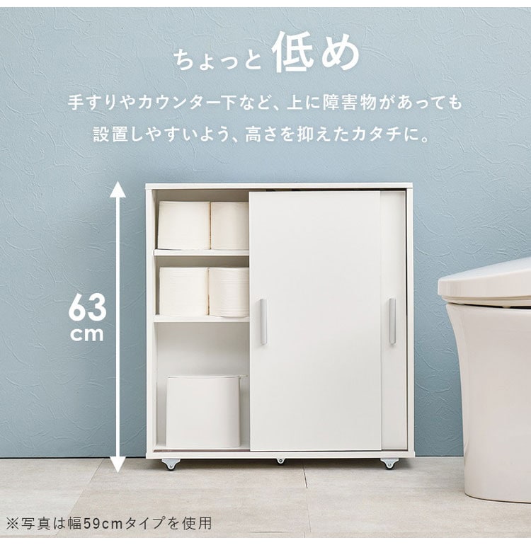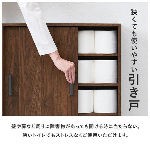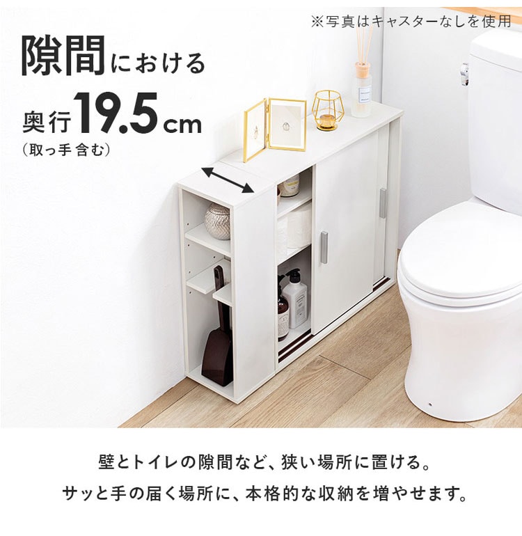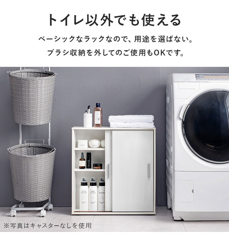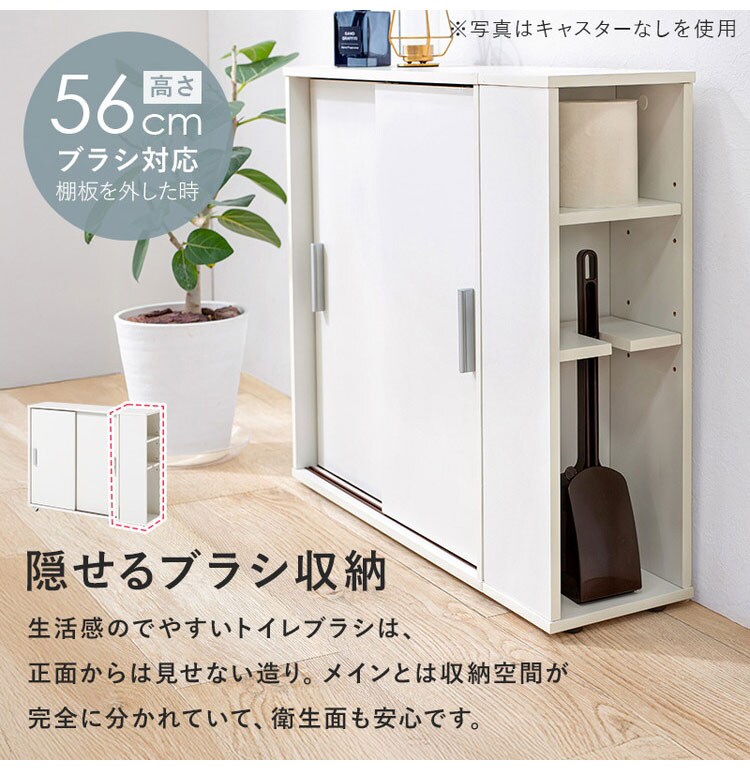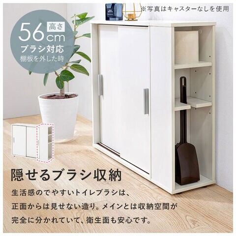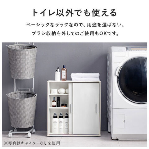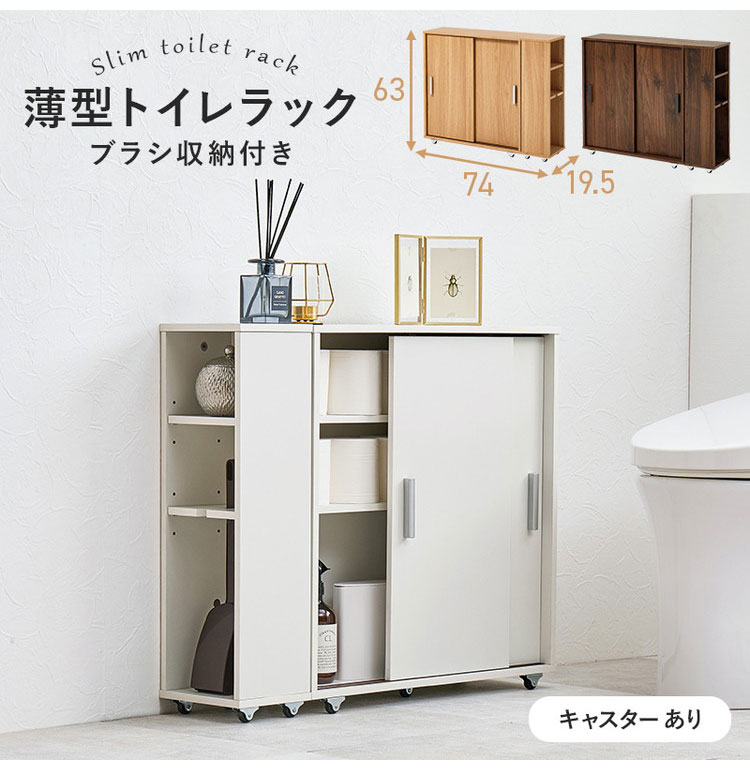 トイレラック 引き戸タイプ キャスター付き ブラシ専用棚付き 奥行スリム 省スペース 幅74cm 奥行19.5cm 高さ63cm トイレ収納 ラック 棚 トイレットペーパー 収納 おしゃれ【送料無料】