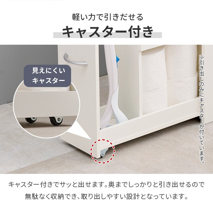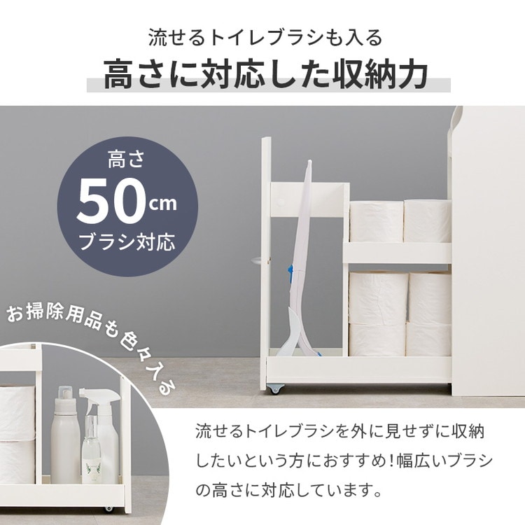 手前に転がる コロコロ トイレラック コストコ対応 幅19cm ブラシ50cm収納 スリム×大容量 省スペース ホワイト 白 トイレ収納ラック 隙間収納 すき間収納 トイレットペーパー 収納【送料無料】