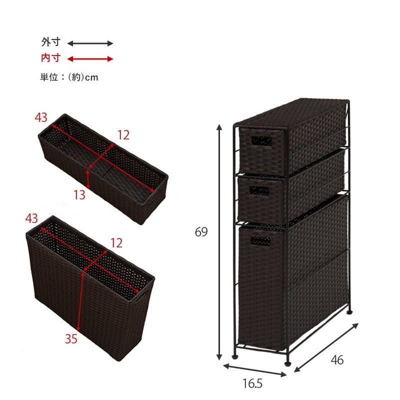 トイレラック 幅16.5cm ラタン調 トイレ収納 トイレットペーパー収納 トイレ用品収納 掃除用具入れ 省スペース スリム コーナー おしゃれ シンプル ラック アジャスター付き 縦型 防水 北欧【送料無料】