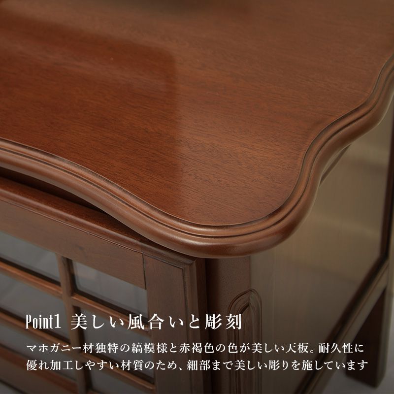 天然木マホガニー材を使用したエレガントリビングボード 手彫り仕上げの為、1点1点の風合いが違います。