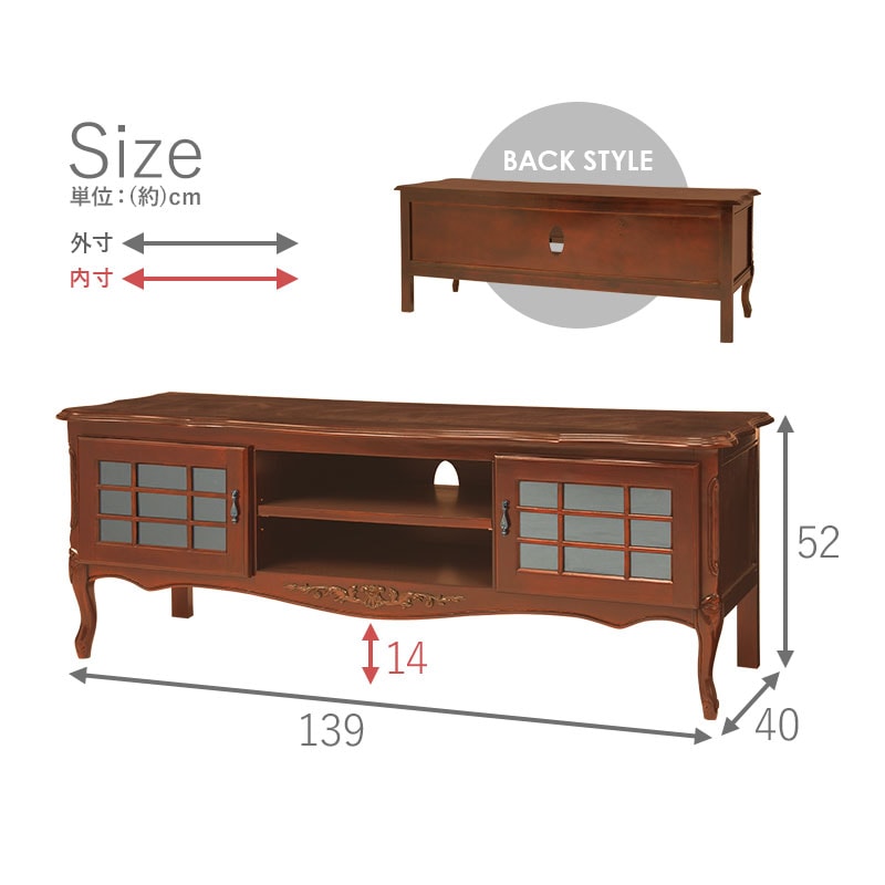 猫脚テレビボード アンティーク調 幅139cm マホガニー テレビ台 TVボード 収納 可愛い 姫系 姫家具 クラシック エレガント【送料無料】