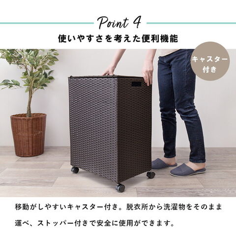 ランドリーボックス フタ付き 幅50cm ランドリーバスケット ラタン調 ランドリー収納 洗濯かご 収納ボックス おしゃれ シンプル 脱衣所 洗面所 キッチン リビング キャスター付き 縦型 大容量 防水【送料無料】