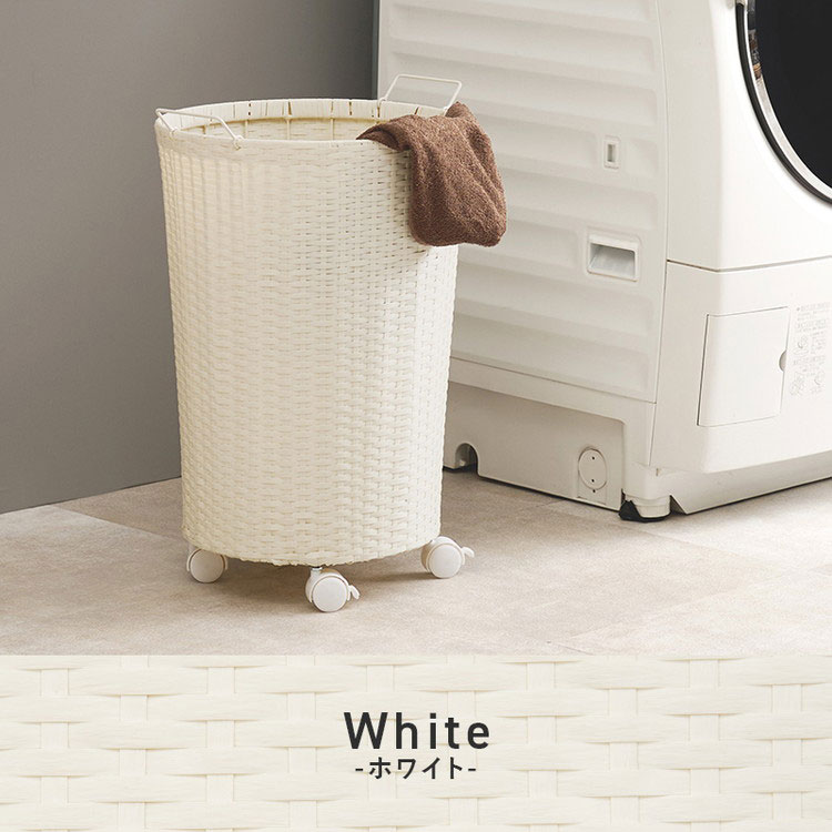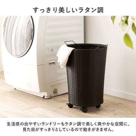 ランドリーバスケット 大容量 キャスター付き 約52L 防水素材 ラタン調 PEラタン かご バスケット 洗濯かご 洗濯カゴ おもちゃ箱 収納ボックス シンプル おしゃれ【送料無料】