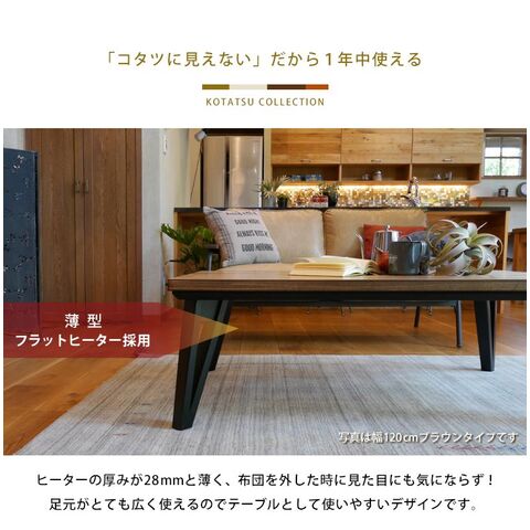 こたつにみえない、斜め脚のおしゃれなデザイン。