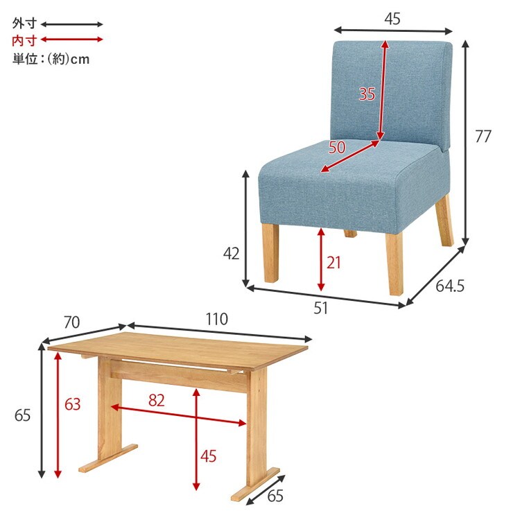 チェア(1P):(約)幅51×奥行64.5×高さ77×座面高42cm