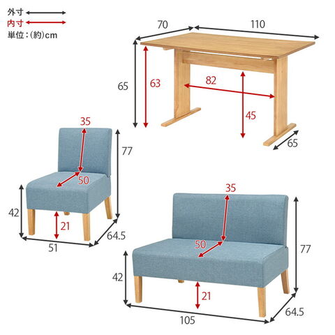 ソファ(2P):(約)幅105×奥行64.5×高さ77×座面高42cm