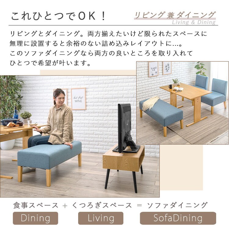 広い座面でゆっくりくつろげるソファーダイニングセット。