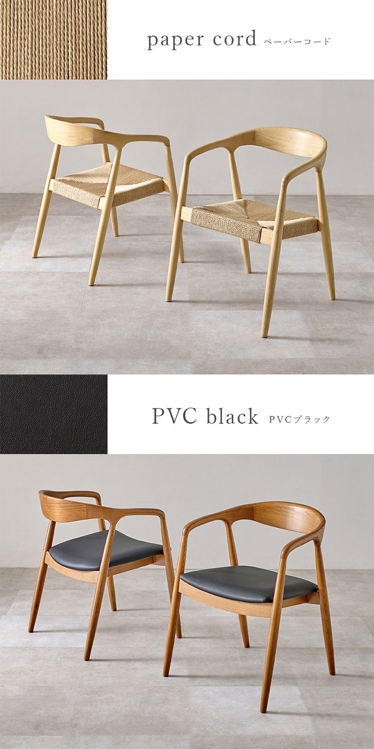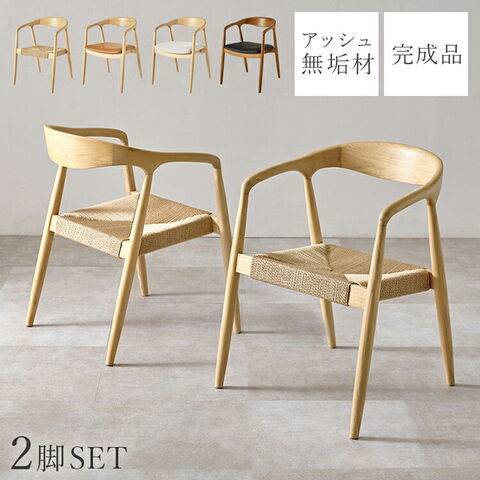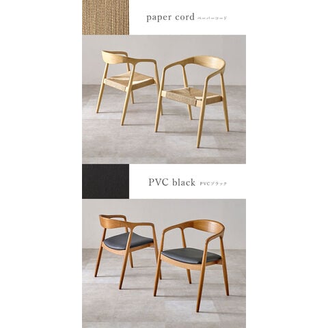天然木 ダイニングチェア 2脚セット アッシュ無垢材 曲木 肘付き 背もたれ ペーパーコード ファブリック PVC 北欧 デザインチェア 椅子 イス VC-7000【送料無料】