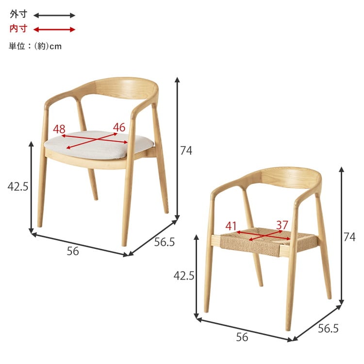 (約)幅56×奥行56.5×高さ74×座面高42.5cm