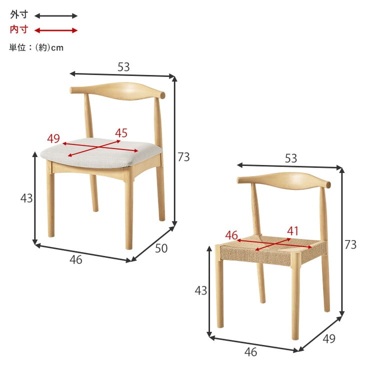 (約)幅53×奥行50×高さ73×座面高43cm