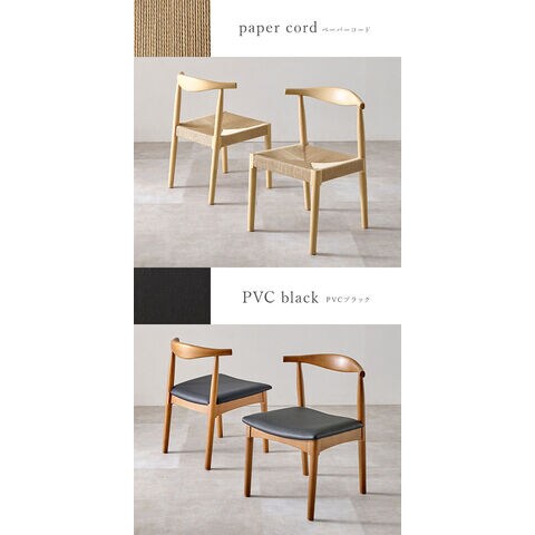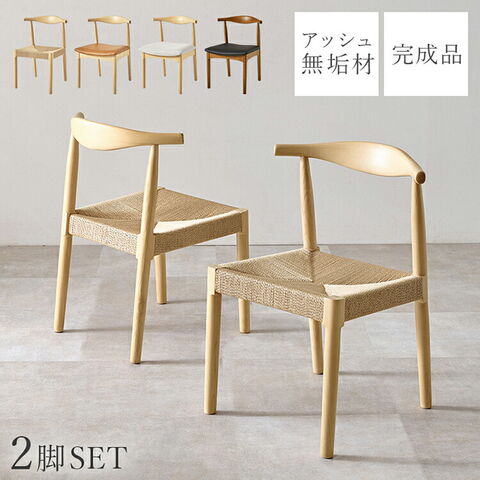 天然木 ダイニングチェア 2脚セット アッシュ無垢材 曲木 背もたれ ペーパーコード ファブリック PVC 北欧 デザインチェア 椅子 イス VC-7001【送料無料】