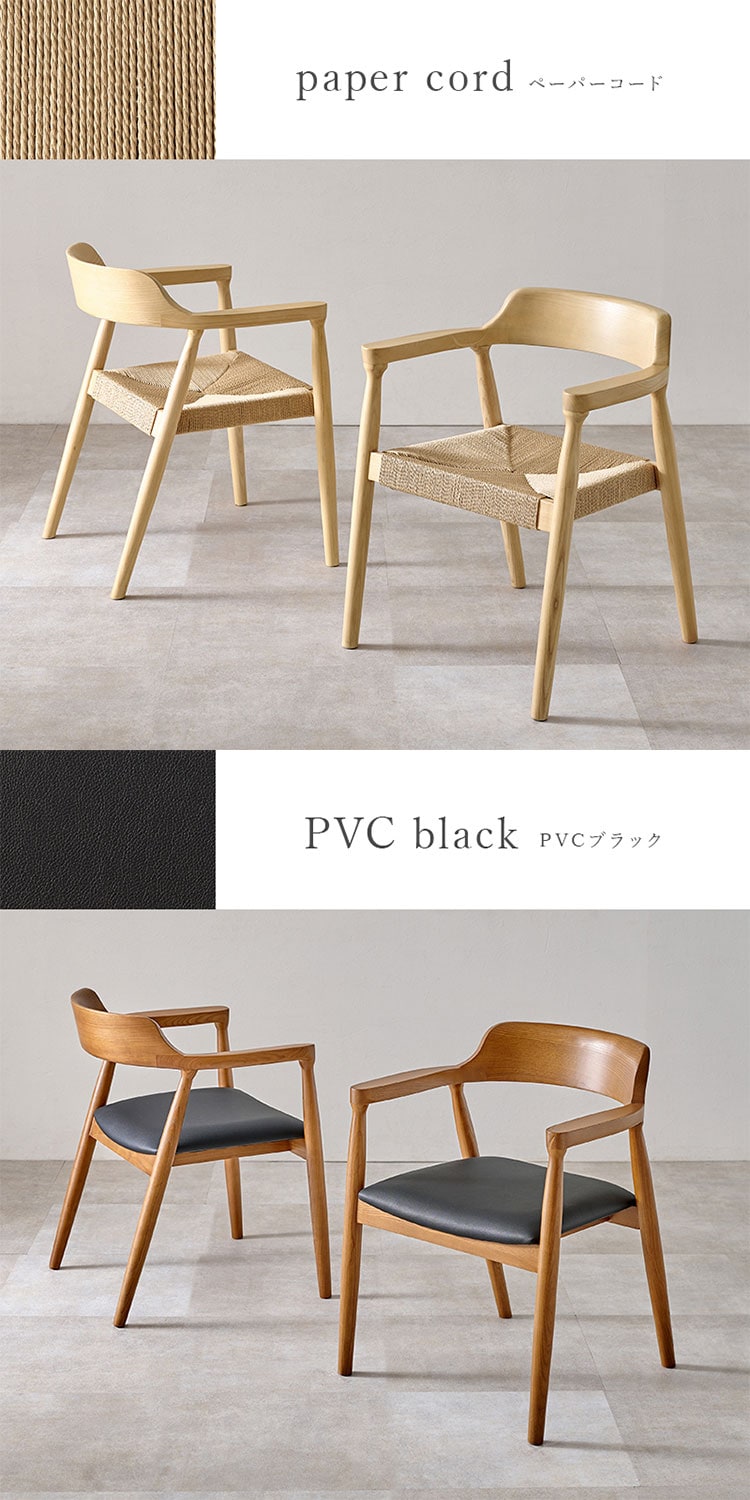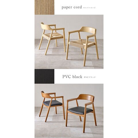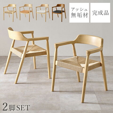 天然木 ダイニングチェア 2脚セット アッシュ無垢材 曲木 肘付き 背もたれ ペーパーコード ファブリック PVC 北欧 デザインチェア 椅子 イス VC-7002【送料無料】