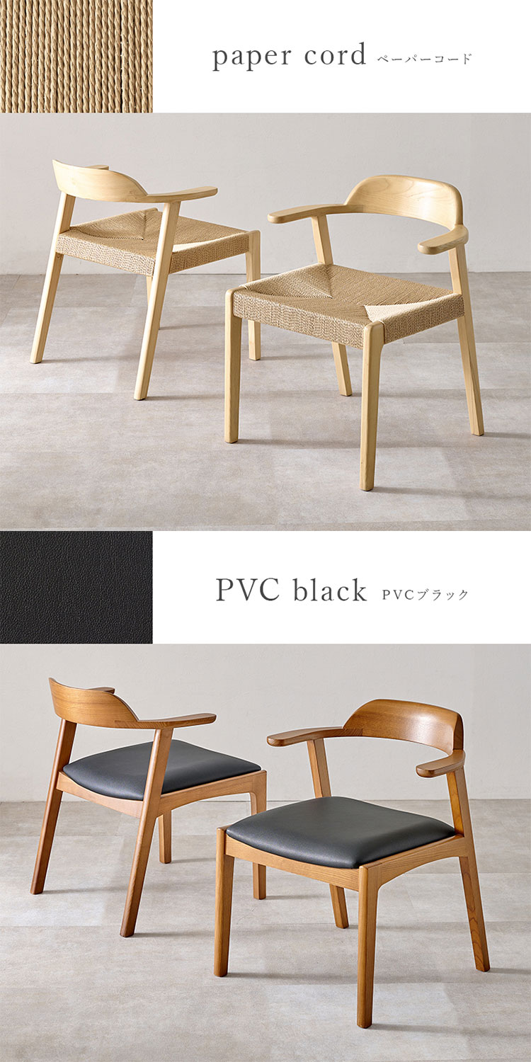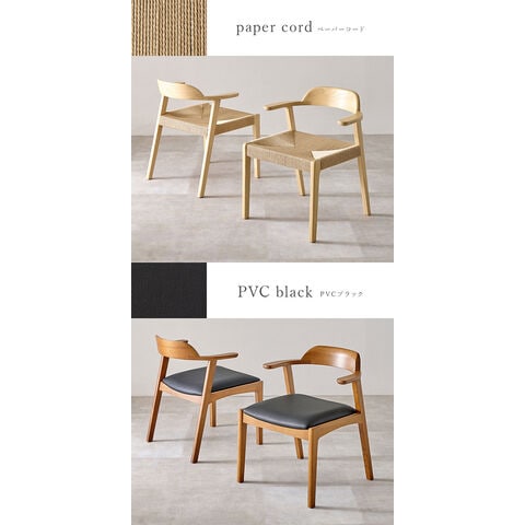 天然木 ダイニングチェア 2脚セット アッシュ無垢材 曲木 肘付き 背もたれ ペーパーコード ファブリック PVC 北欧 デザインチェア 椅子 イス VC-7003【送料無料】