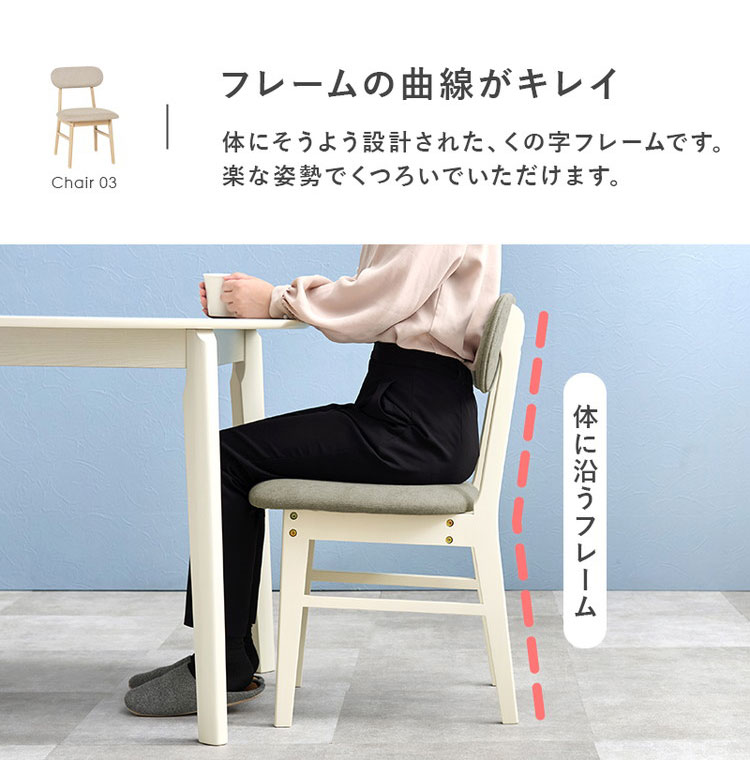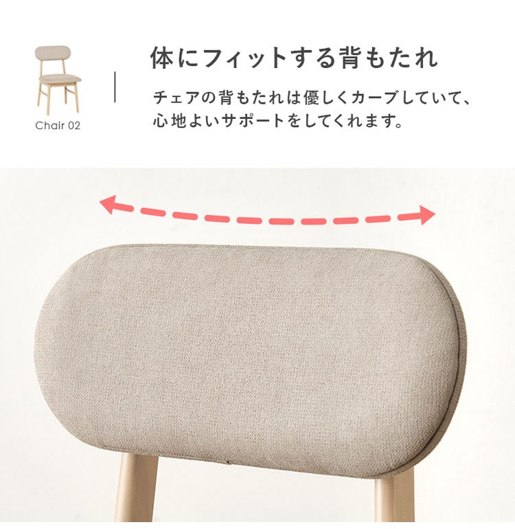 天然木を使用した温かみのあるダイニングチェア。コンパクトでシンプルなデザインですが、体にそう背もたれが姿勢をサポートします。