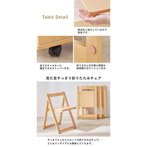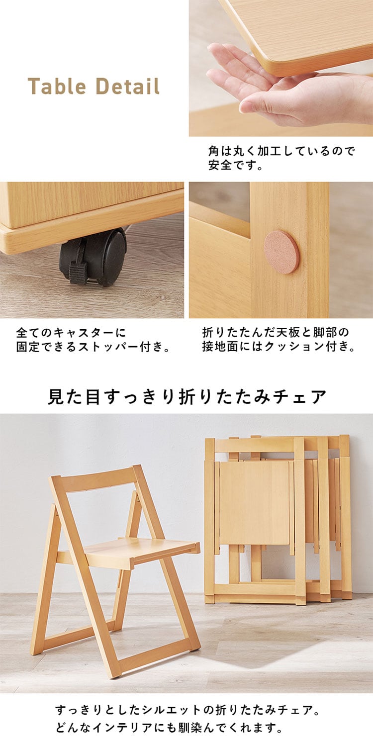■組立式(テーブルのみ)■テーブル:キャスター付■天板・チェアー:折りたたみ式