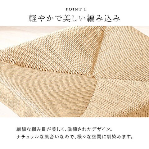 天然素材の温もりをまとった、見ても触れても心地よいスツール。座面は頑丈なペーパーコードを編んだナチュラルな風合いです。スタッキング可能。
