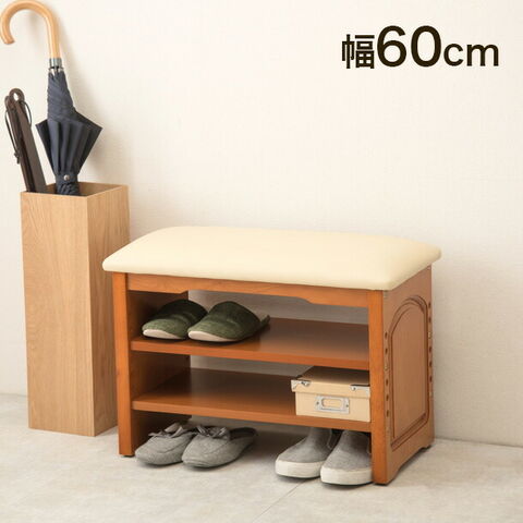 玄関ベンチ 幅60cm 棚付き 玄関チェア 玄関椅子 玄関収納 スリッパ収納 スリッパラック 靴収納 シューズラック【送料無料】