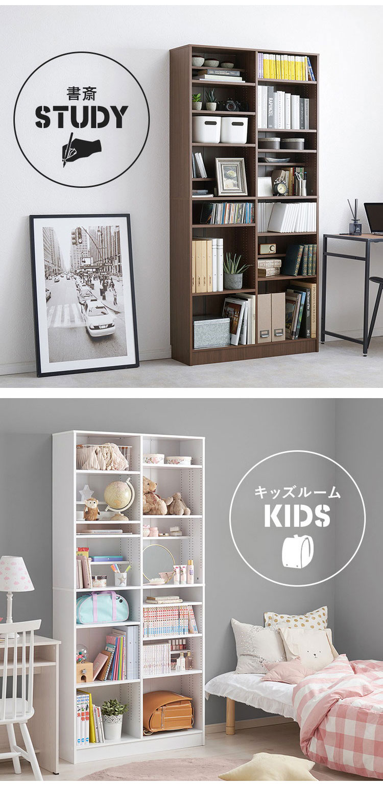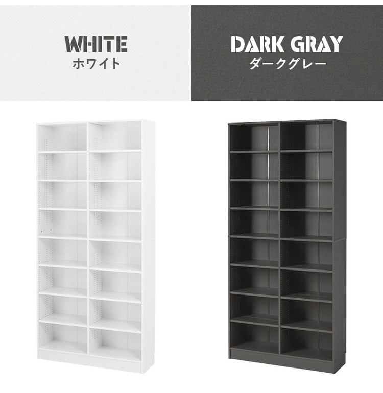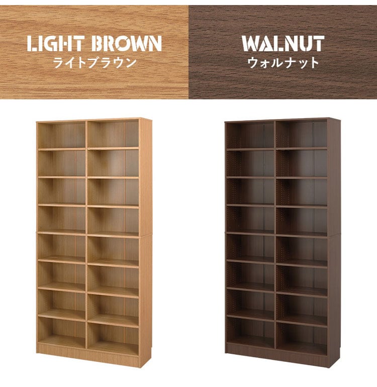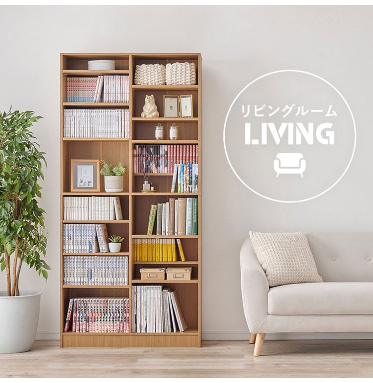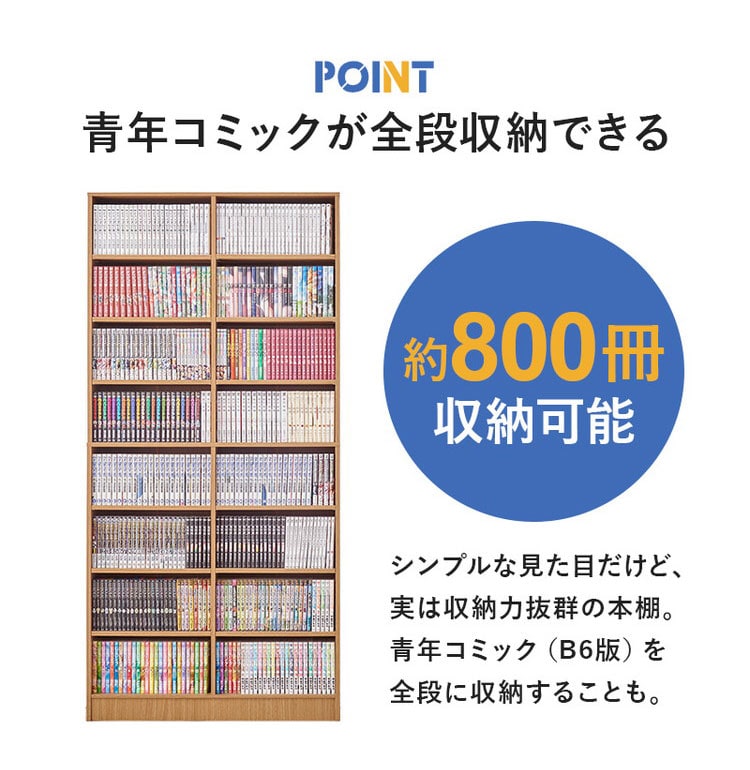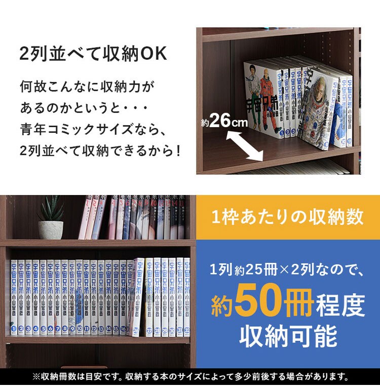 前後2列別々に棚板高さが変えられ、大容量収納できるマンガ好きの為の本棚