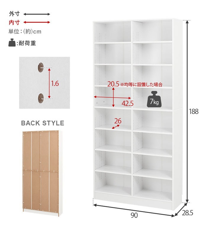 (約)幅90×奥行28.5×高さ188cm