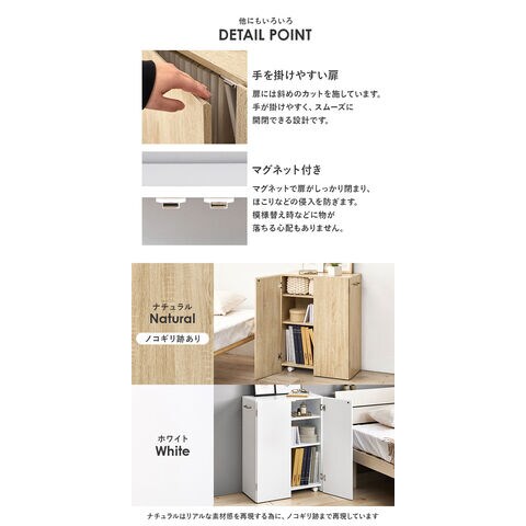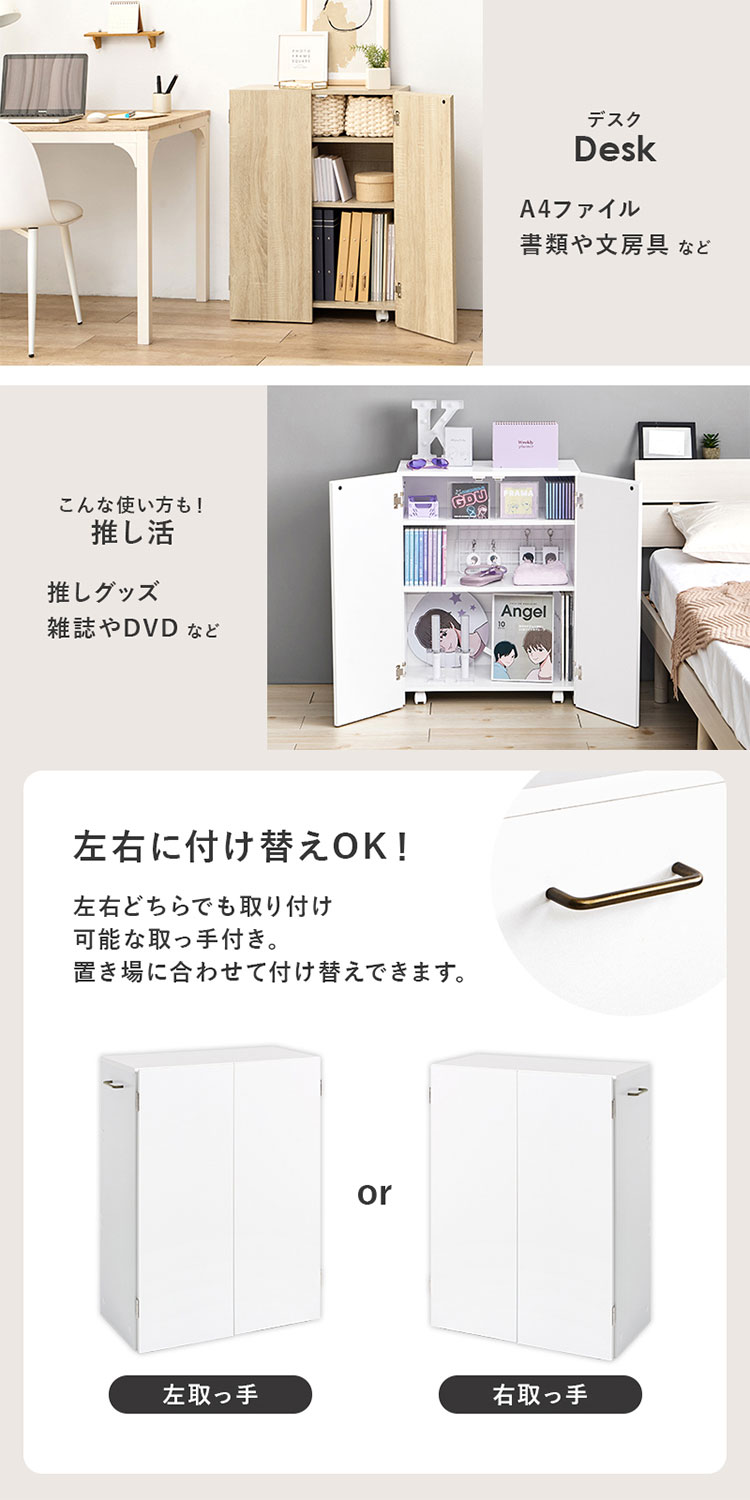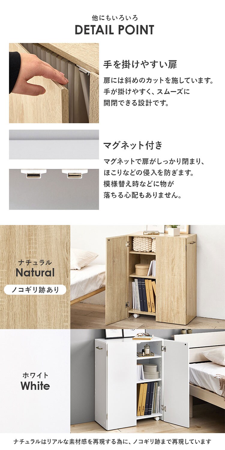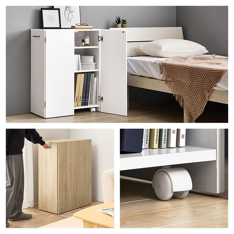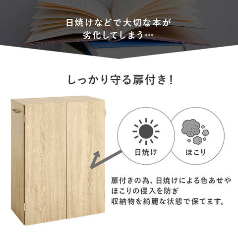 扉付で中の本や雑貨の日焼けを防ぎ、生活感も隠してくれます。キャスター付きなので、デスク横やリビングなど収納ワゴンのようにも使えます。