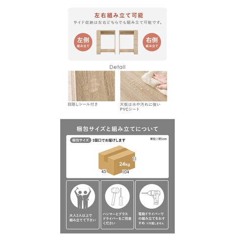 主材:プリント紙パーティクルボード、天板:合成樹脂化粧パーティクルボード